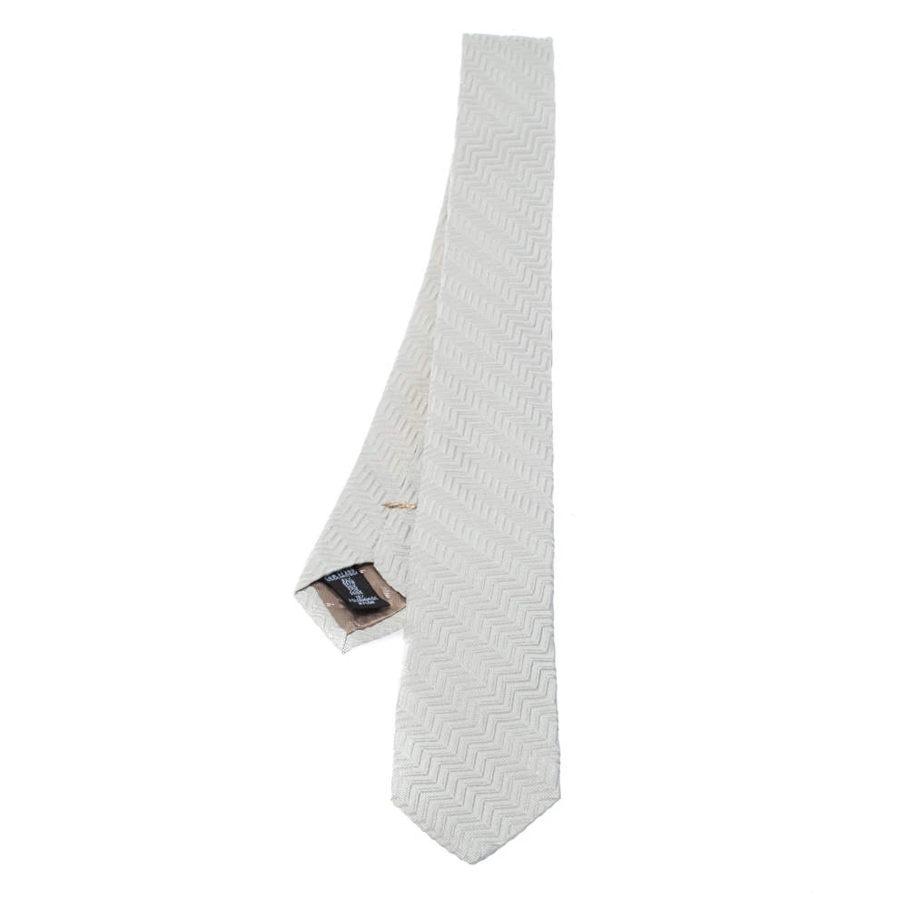 This suave silk tie from Emporio Armani is perfect for the chivalric you. Designed in an understated ivory shade, this tie is designed with a zig-zag pattern all over and comes with the brand label at the rear. Wear this to your most important meetings and you are sure to be the ideal gentleman.