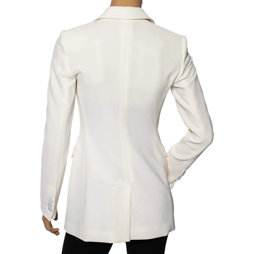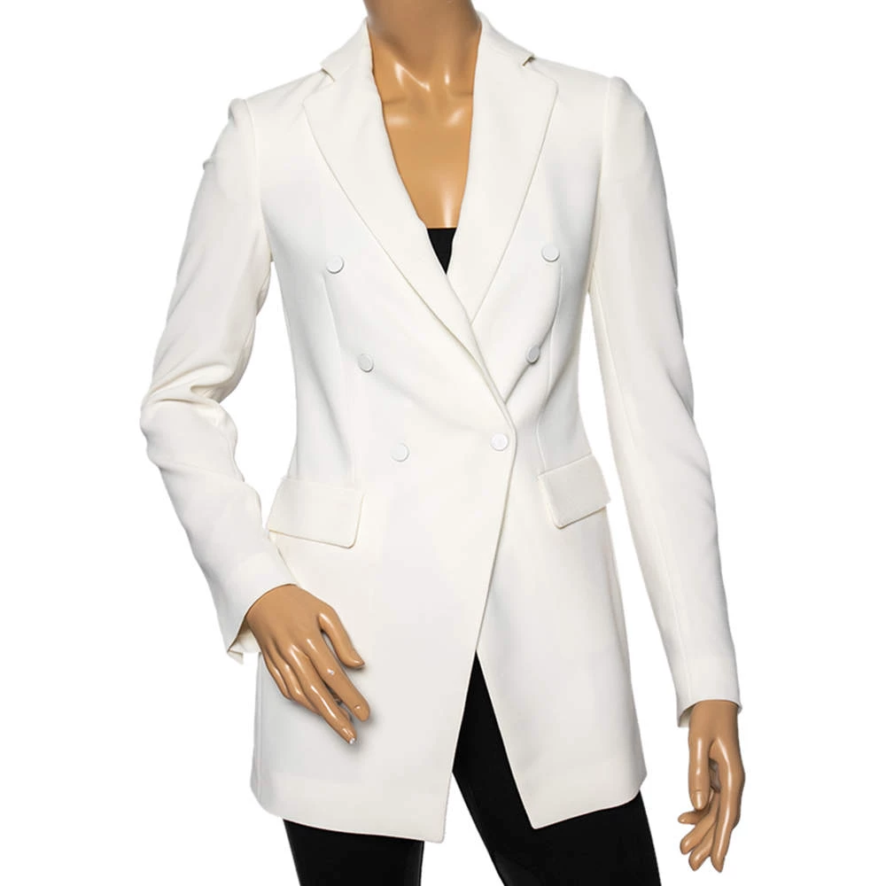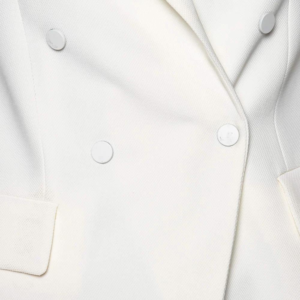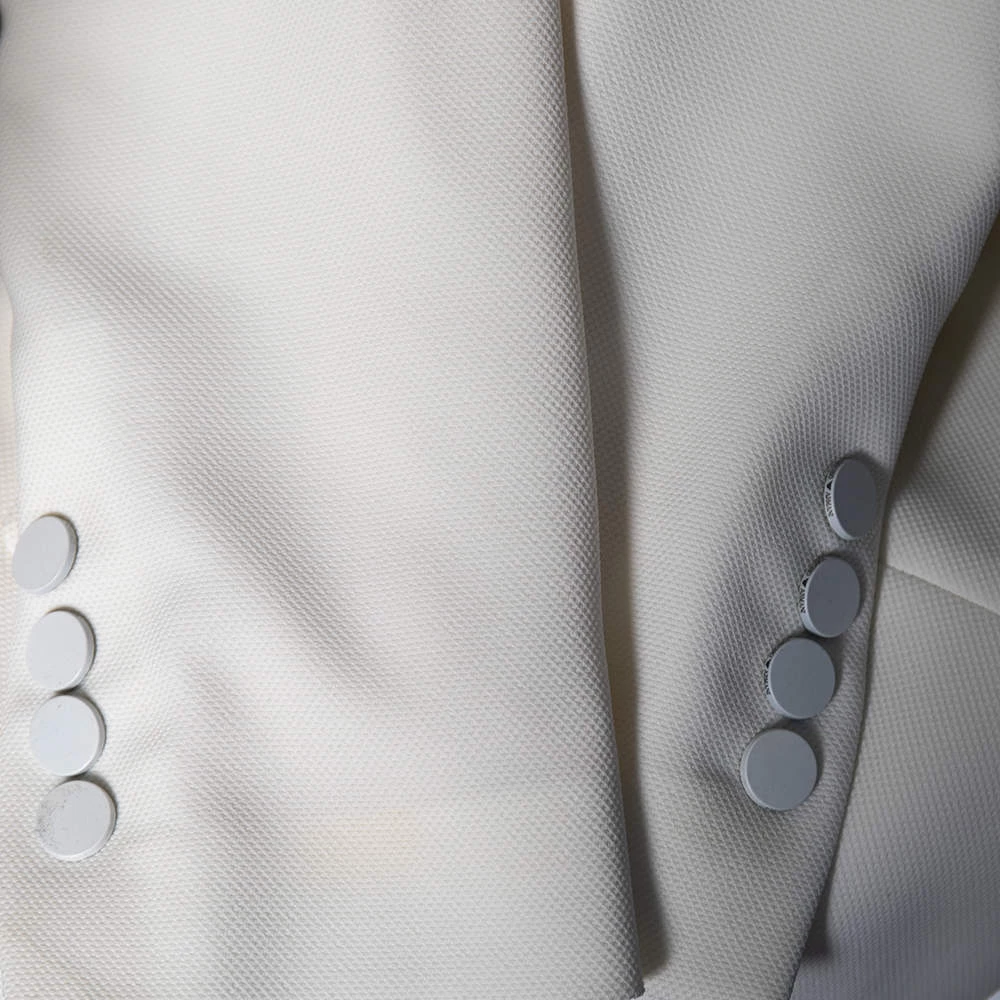 Your formal styles are set to look more polished and sharp with this blazer. This blazer from Emporio Armani is stitched using ivory textured crepe material in a double-breasted style. It features two external pockets. Experience exemplary comfort and elegance as you wear this blazer.