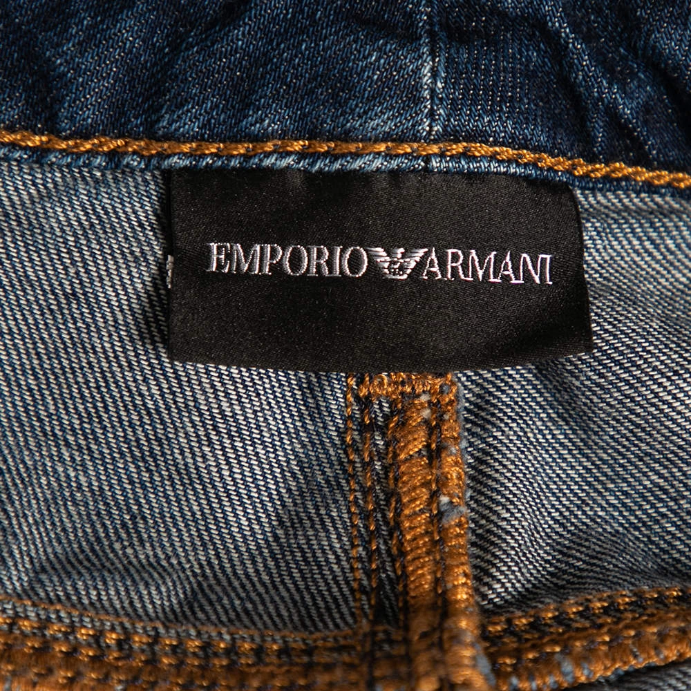 Add these super-trendy and chic jeans from Emporio Armani to your closet. They are made using denim fabric and flaunt a nice navy blue shade that can be teamed well with basic tees or crop tops.