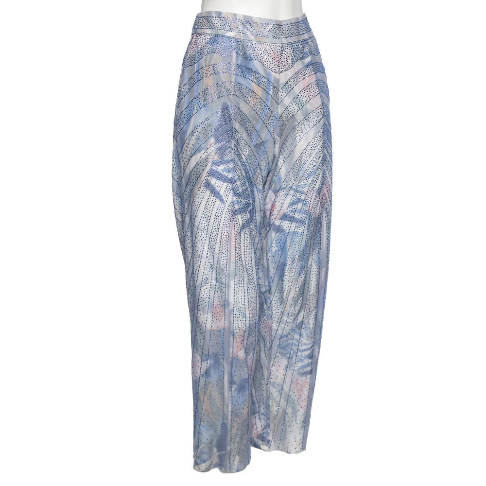These trousers from the House of Emporio Armani are going to be your most favorite pair! They are tailored using lavender mesh fabric, which is highlighted with beaded embellishments. They are provided with a buttoned closure. Elevate your style by wearing these trousers.