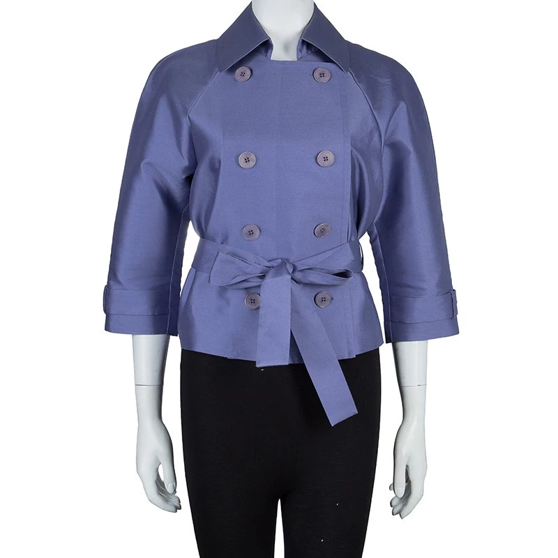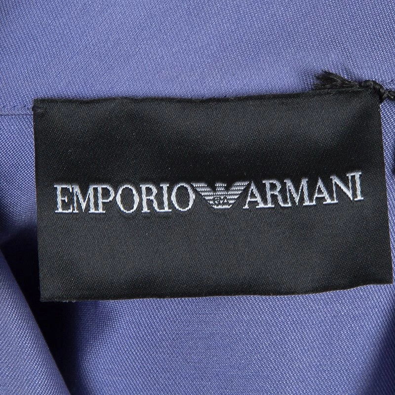 Add an essence of opulence and chicness to your look wearing this luxurious and exquisite Double Breasted Jacket by Emporio Armani. Crafted with polyester and silk, it features classic collars and a belted waist. This jacket is accentuated with well suited long sleeves and button fastening.