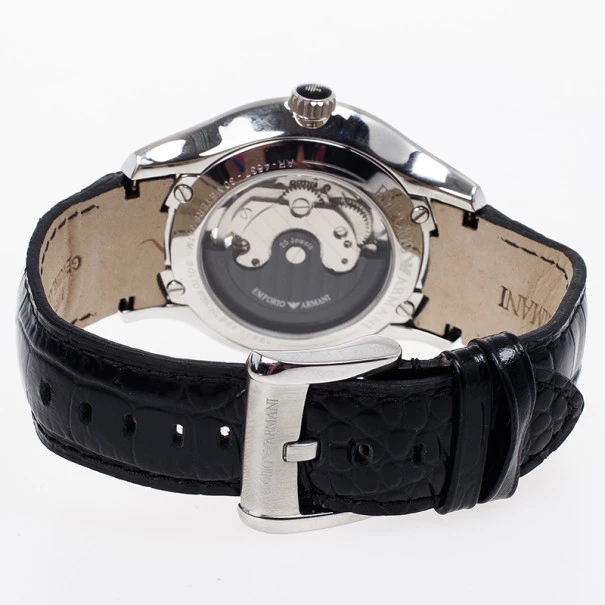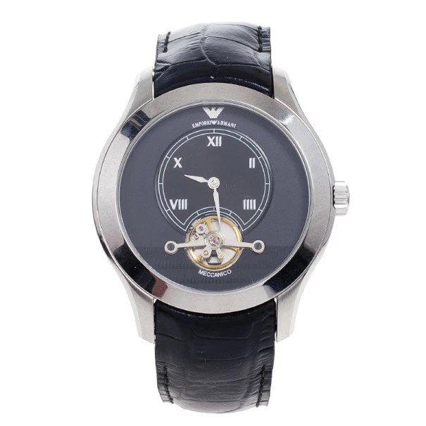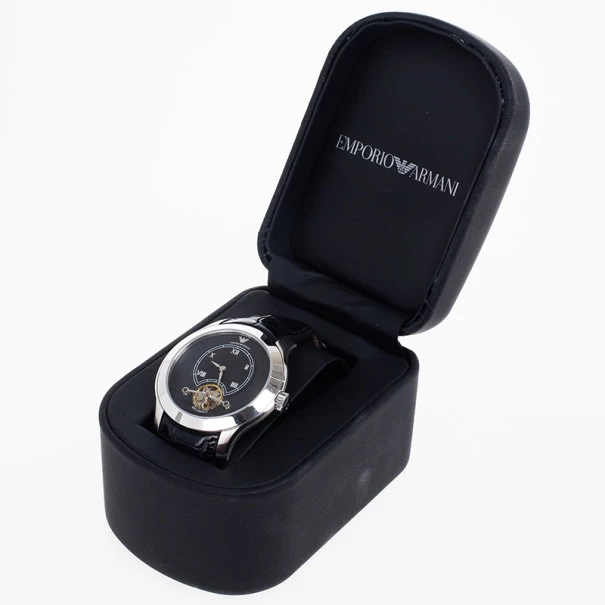 This timepiece is a unique creation for the modern men. This watch is crafted from stainless steel and features a black dial housing a sub-dial with luminous Roman numerals, hands and a unique skeleton sub-dial at 6 o’clock from which the movement is visible. The watch with an exhibition caseback is water resistant up to 30 MM. The leather bracelet fits on the wrist with a buckle closure.Original Retail Price: US $679
