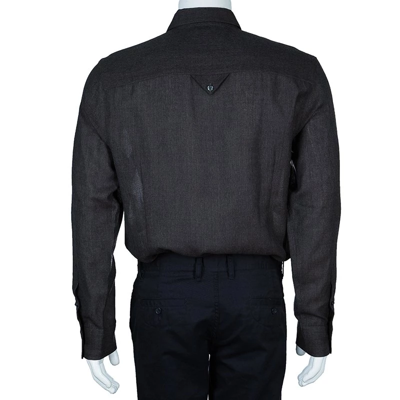 Spun from high quality wool, this shirt by Emporio Armani is fashionable and comfortable. It features a traditional collar, front button fastenings and cuffed long sleeves.