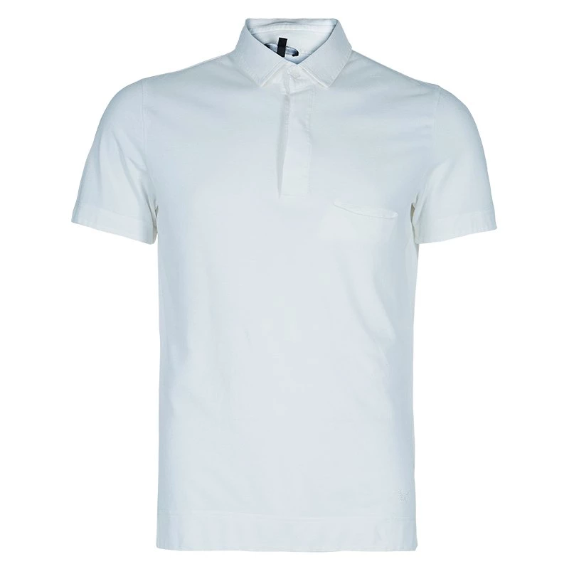For a proper yet cool look this summer, grab this Emporio Armani cotton polo shirt. Pair it with some shorts and you’re good to go! It features a hidden button placket, has a slim fit and a classic collar.
