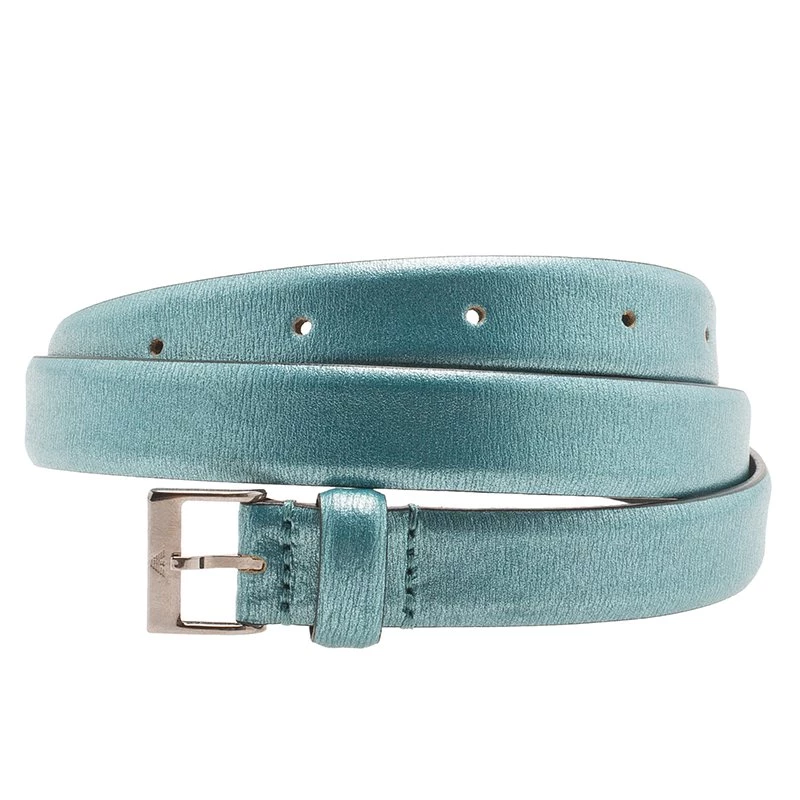 Accessorise that skirt or denim perfectly with this gorgeous belt from none other than Armani. In an endearing metallic blue colour, the belt is made out of the finest quality material. It is extremely sleek and has a dainty silver buckle. It can be paired with both formal and casual dresses.