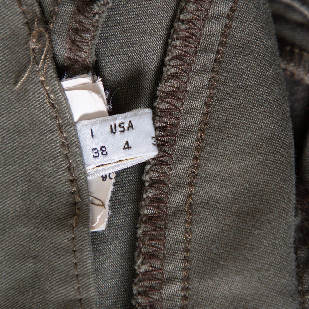 These military green trousers from Emporio Armani are trendy and minimally stylish. The denim trousers have been designed with satin trim details that lend them a chic look and come equipped with a zip fastening. They’ll look best with simple tops and slip-on flats.