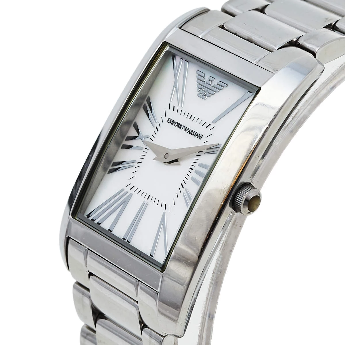 Designed with a fine blend of luxury and craftsmanship, this AR2037 watch from Emporio Armani is sure to delight your style. Made from stainless steel, it has a mother of pearl dial with two hands and Roman numeral hour markers. The push-button deployment clasp of the bracelet makes this quartz timepiece ready to be yours. NOTE: (Exotic Material, the item may be restricted from shipping outside the UAE. Please contact us at [email protected] to check if the item can be shipped to your country.)