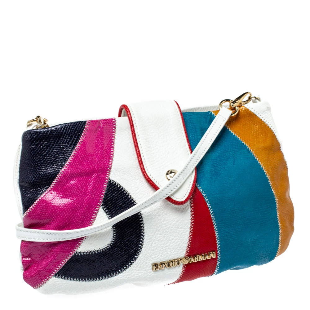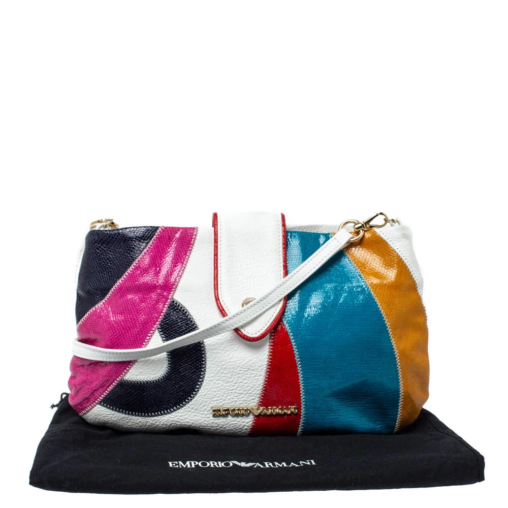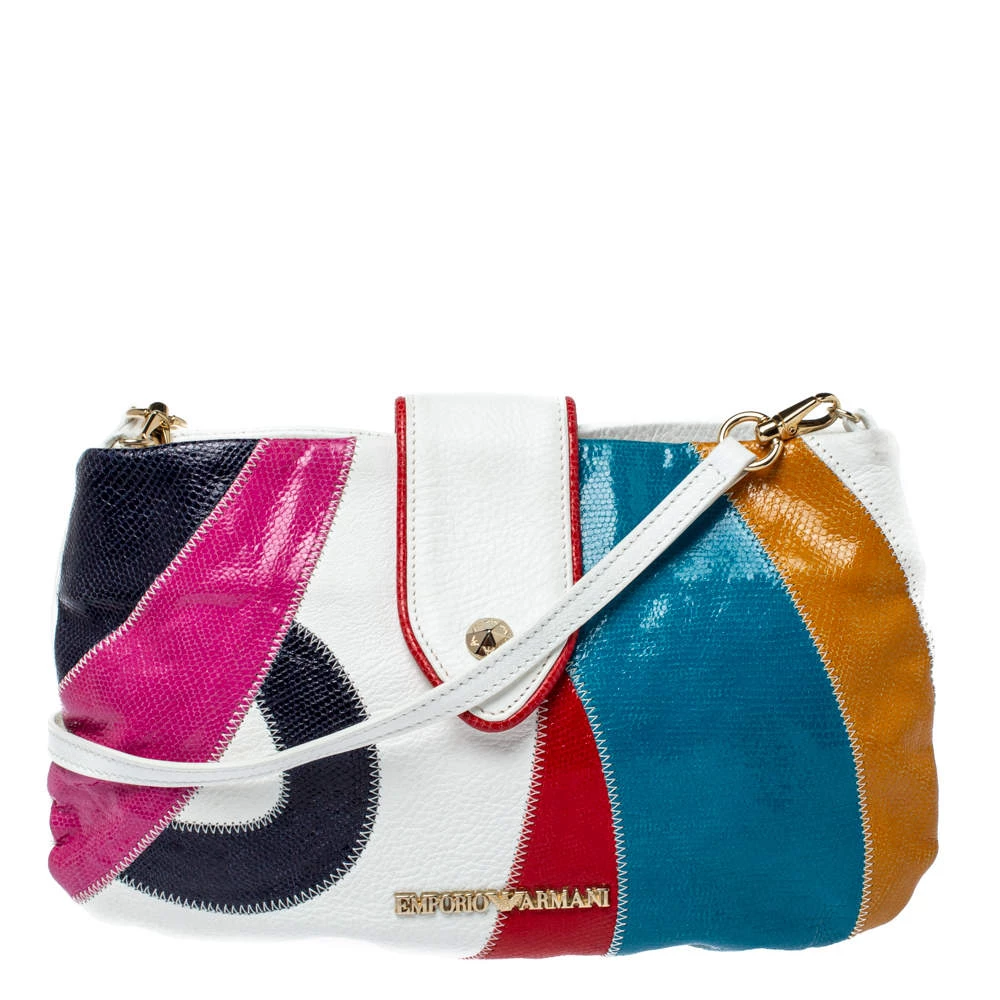 Fun and stylish, Emporio Armani’s collections capture the effortless finesse of the modern woman. Crafted from leather in multiple hues, this chic bag features panels of snakeskin-effect leather. The sleek, understated silhouette is punctuated with a gold-tone logo plaque to the front and suspends from a slender strap.