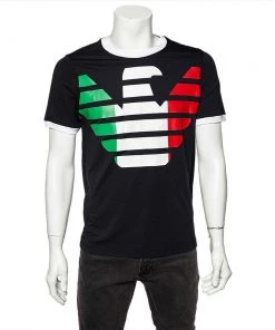 A perfect combination of comfort, luxury, and style, this Emporio Armani t-shirt is a must-have piece! Made from cotton in a navy blue color, the creation is elevated by the logo print. Finished off with a round neckline and short sleeves, it can be styled with denim pants for a cool look.