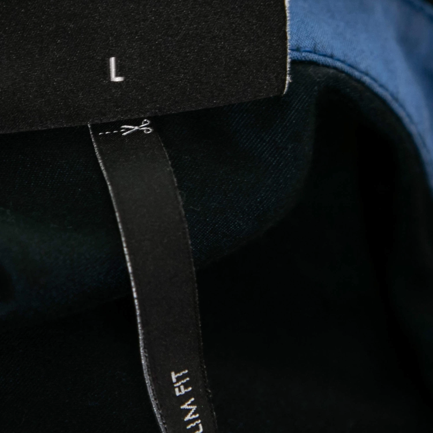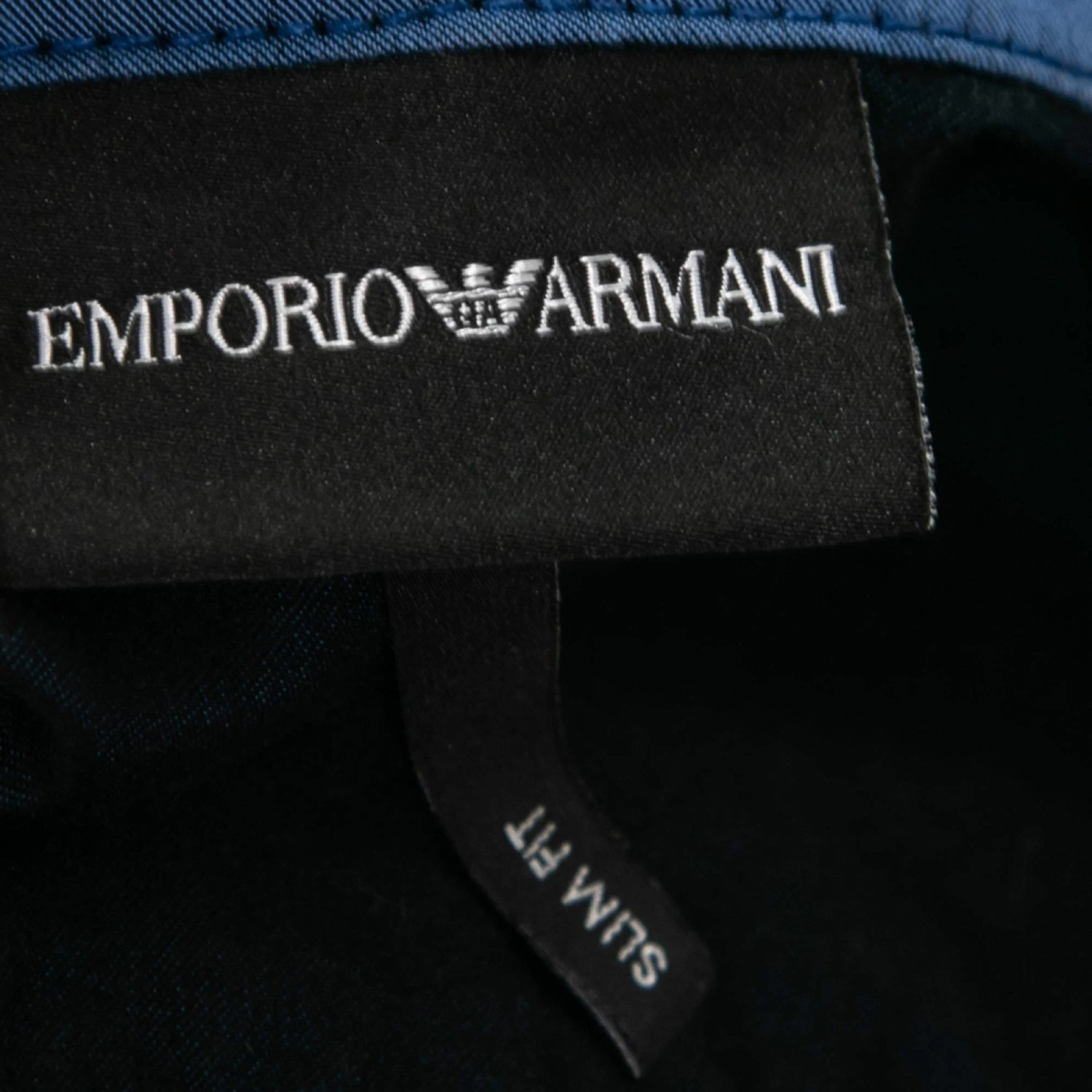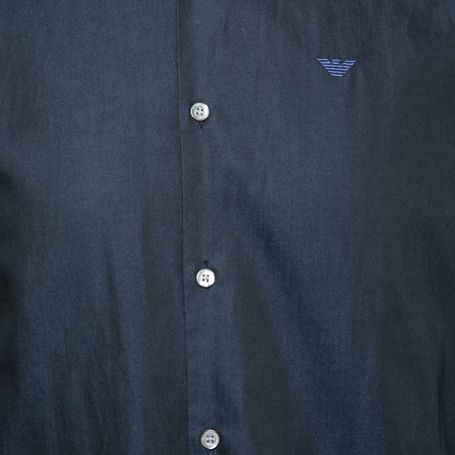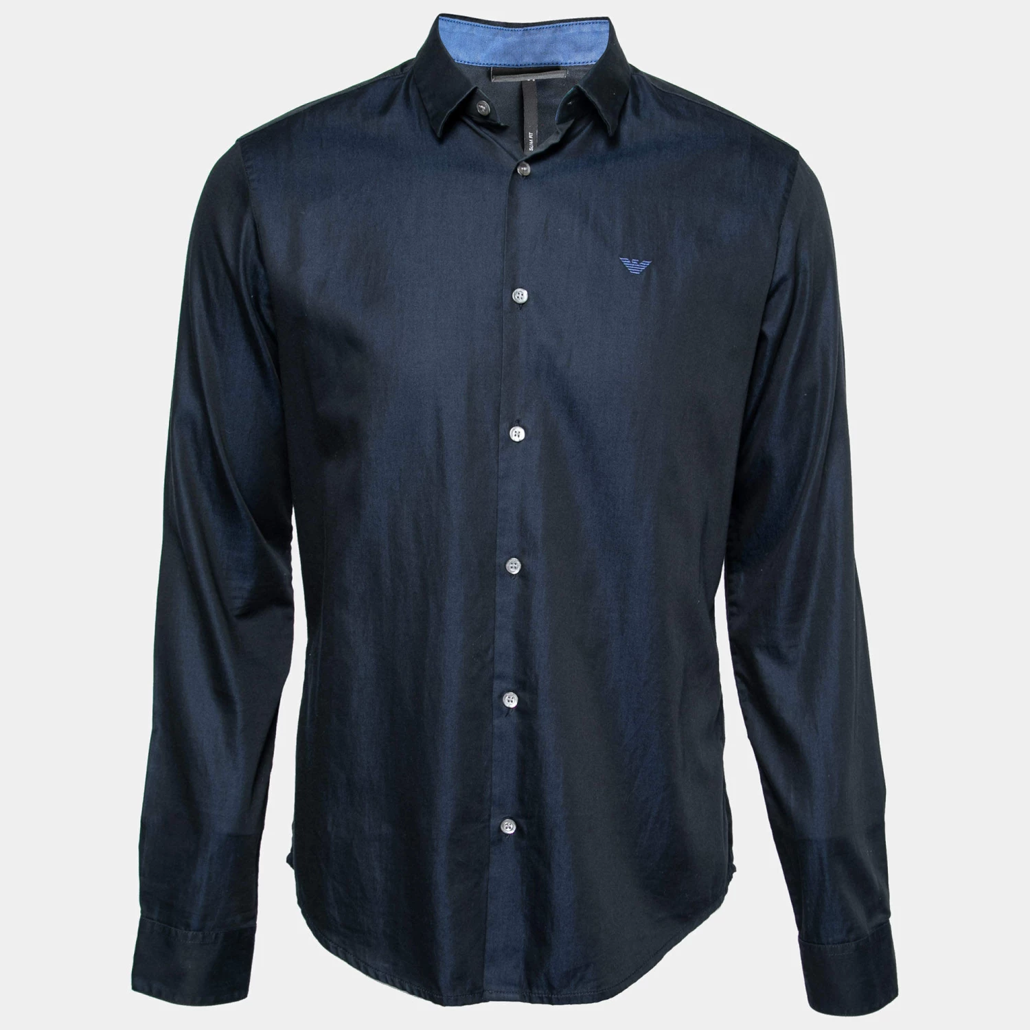 Simple in design, this Emporio Armani shirt comes in a navy blue hue. It flaunts long sleeves with a buttoned cuff, a crew neckline, and a front button closure. Made from cotton, it gets a signature touch with brand detailing on the side and will perfectly complement jeans or pants.