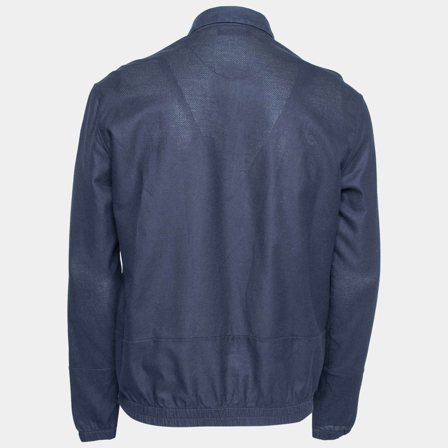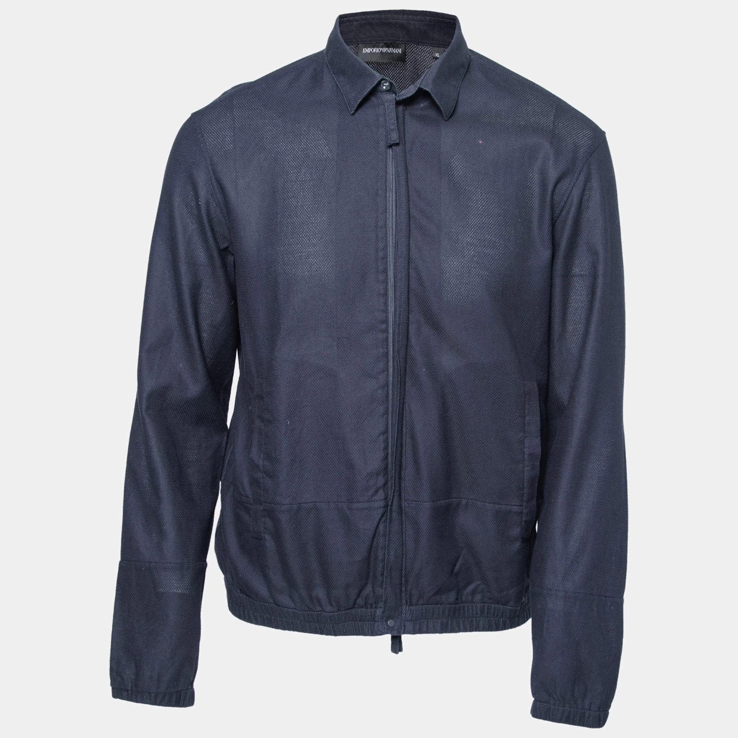 The easy-to-style navy blue shade and the lightweight design make this Emporio Armani jacket a covetable piece. It has a durable quality, two pockets, and a full front zip closure. Wear this one for an effortless look.