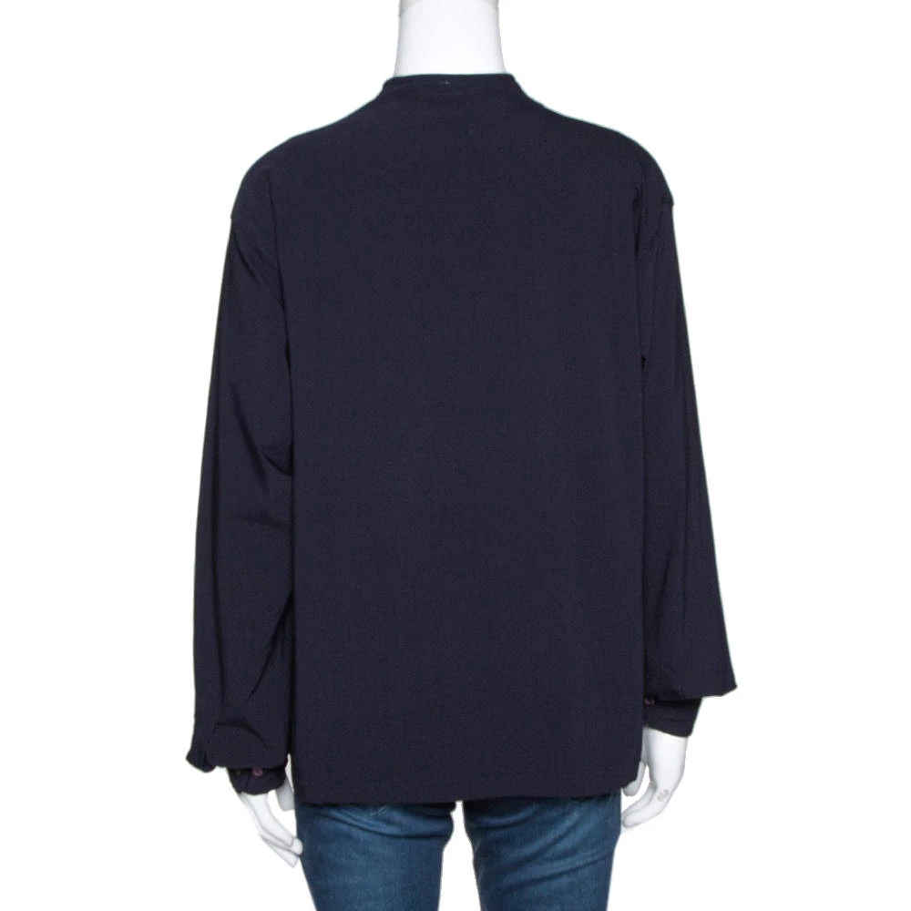 With a versatile range of styles and designs to choose from, Emporio Armani designs some of the best creations for women. This navy blue blouse will look great when paired with pants and heels. It has long sleeves, a comfortable fit and a V neckline.