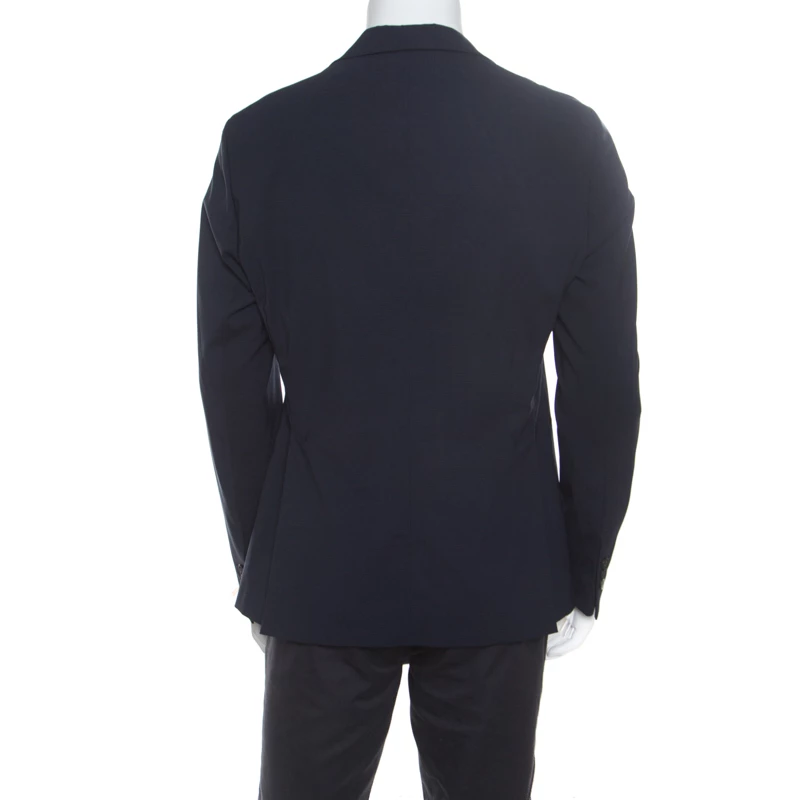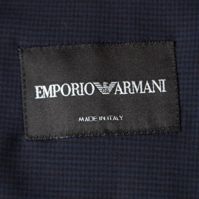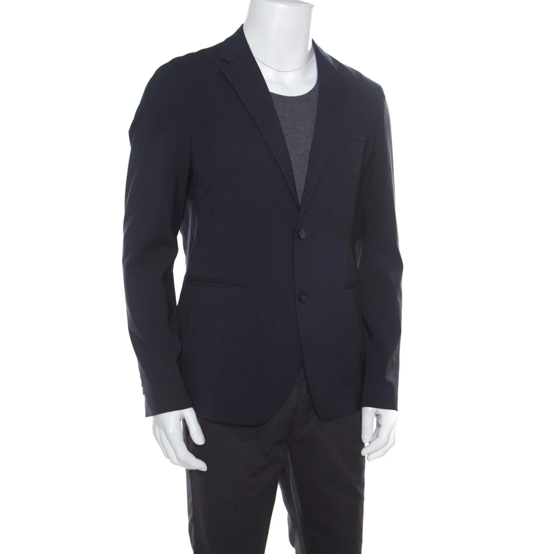 This splendid blazer from Emporio Armani is sure to make you look suave, smart and very handsome. The navy blue blazer is made of a wool blend and features a gingham check pattern all over it. It flaunts notched lapels, front button fastenings, a chest pocket, twin slip pockets and long sleeves. Ideal for the modern man, it can be paired well with a smart shirt and formal trousers to make an impression.