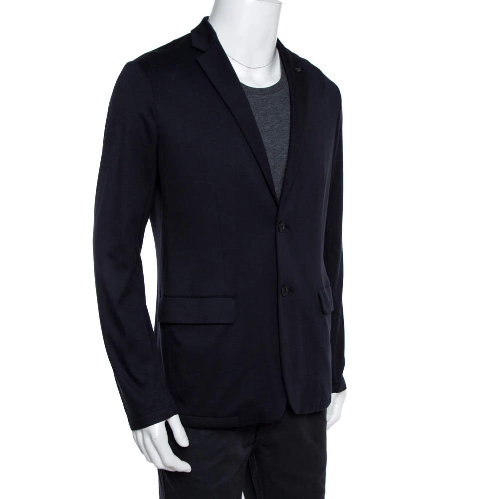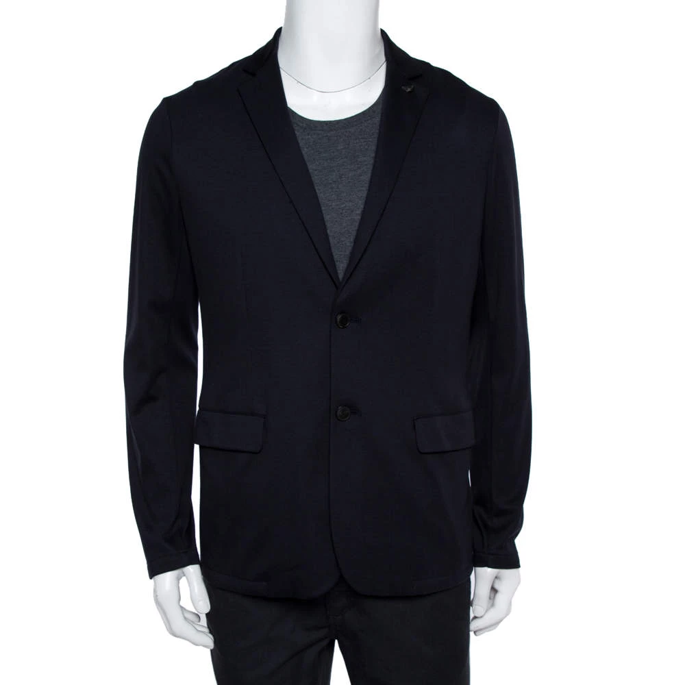 This sophisticated and refined blazer from Emporio Armani can be worn for projecting effortless looks. It is made of 100% cotton and styled with notched lapels, dual front button fastenings, two flap pockets, and long sleeves. It is sure to lend you a fantastic fit and will look great with smart trousers and oxfords.