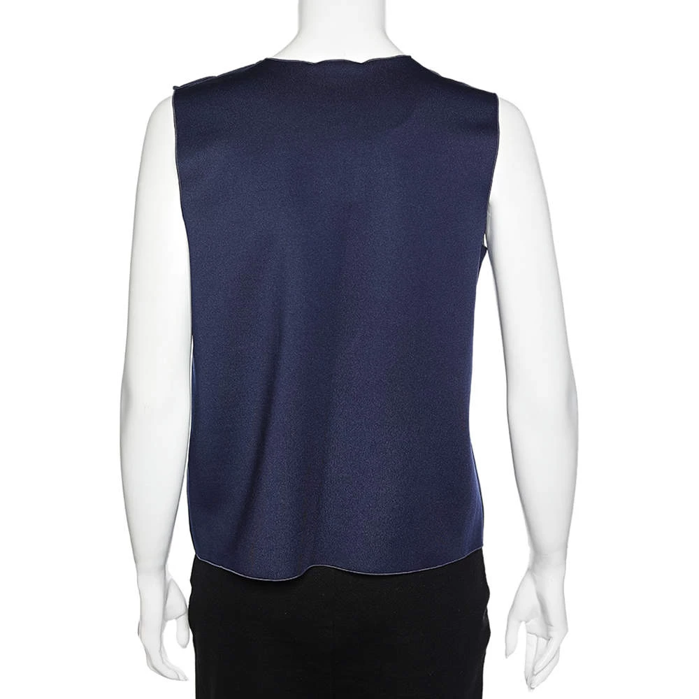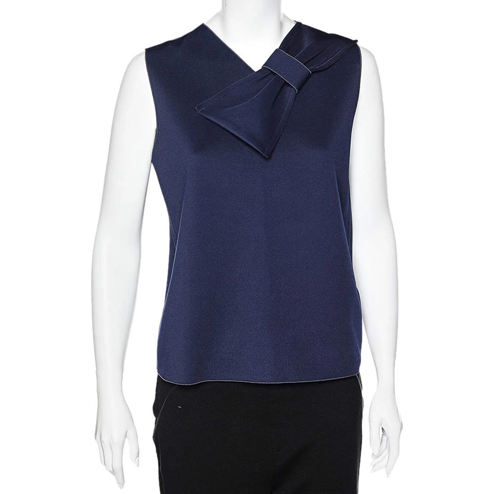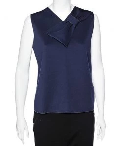 This top from Emporio Armani will help you update your casual collection. It is made from navy-blue knit fabric and shows a matching bow detail on the front. This sleeveless top can be paired with formal trousers for a polished look.