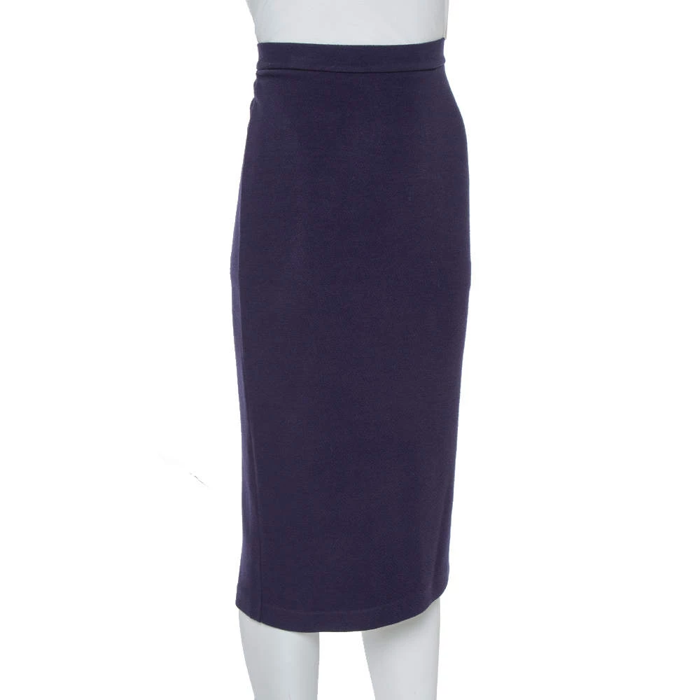 Wear this Emporio Armani skirt for an effortless, elegant silhouette. Crafted in quality materials, it features a midi hem for a flattering, feminine finish and is equipped with a zipper and a vent at the back. For an evening look, style it with a camisole, a cropped jacket, and high heel sandals.