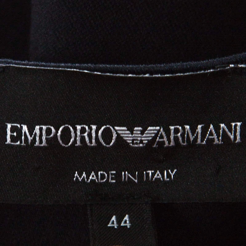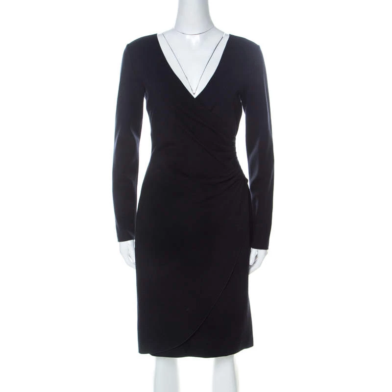 Elegant and good-looking, this Emporio Armani dress is a true example of the brand’s fine designs. Bold and beautiful, you can never go wrong with this navy blue piece, be it any occasion. Tailored from a blend of fabrics, this dress has a draped design that creates a faux-wrap silhouette and long sleeves.