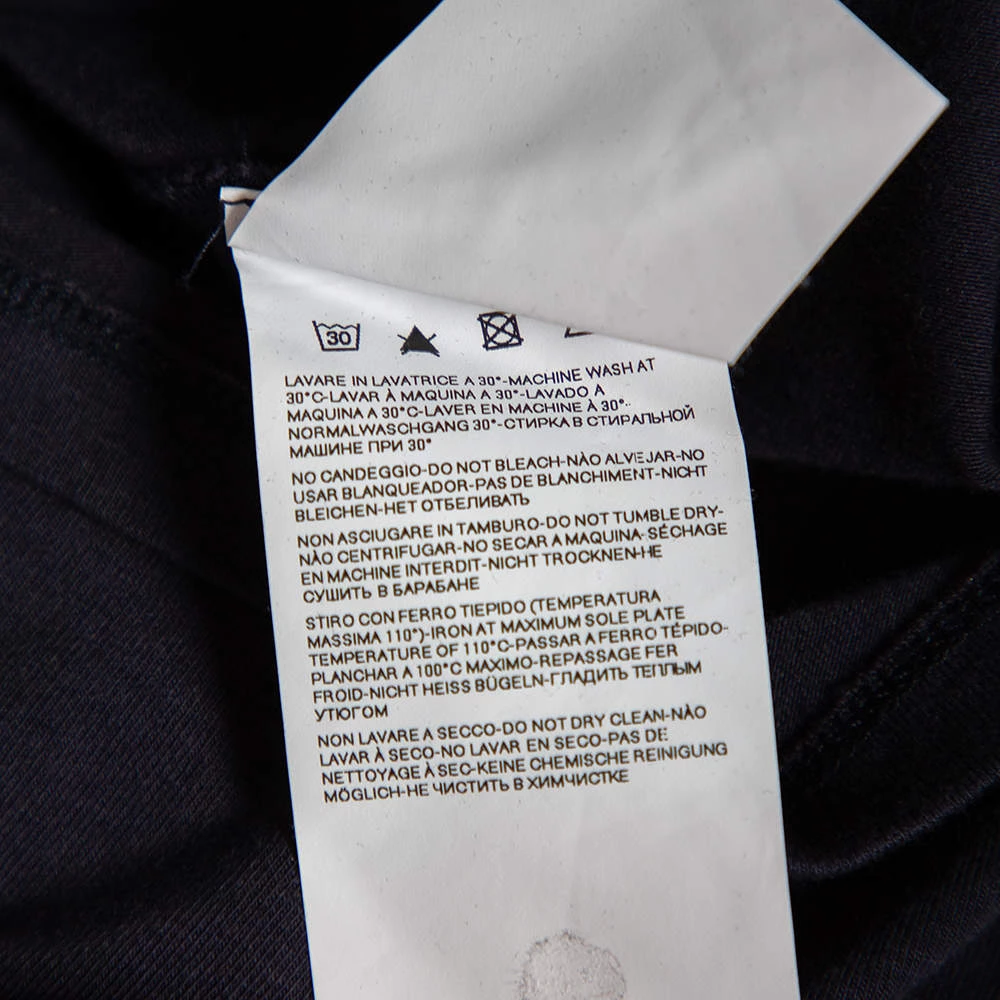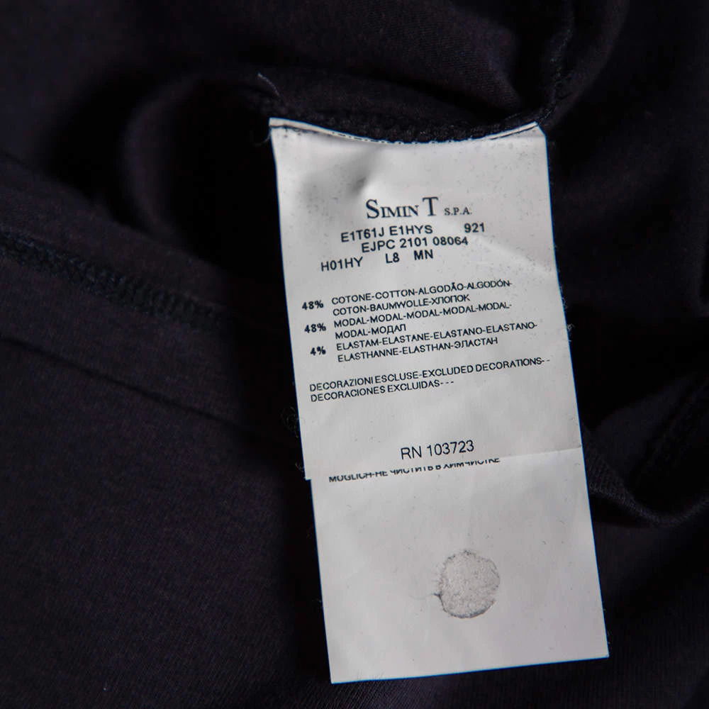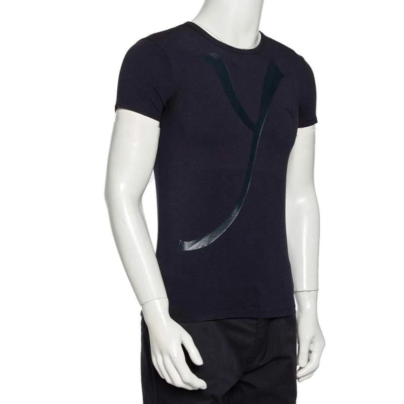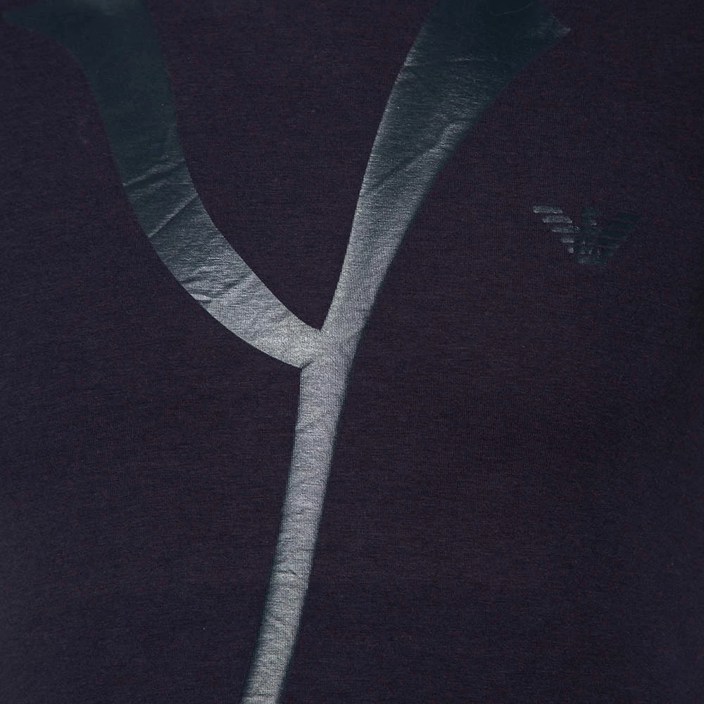 Basic t-shirts are a must-have for any wardrobe! Emporio Armani brings you the best. Made from cotton knit material in a navy blue, it features a crew neckline, a logo print on the front, and a fitted silhouette.