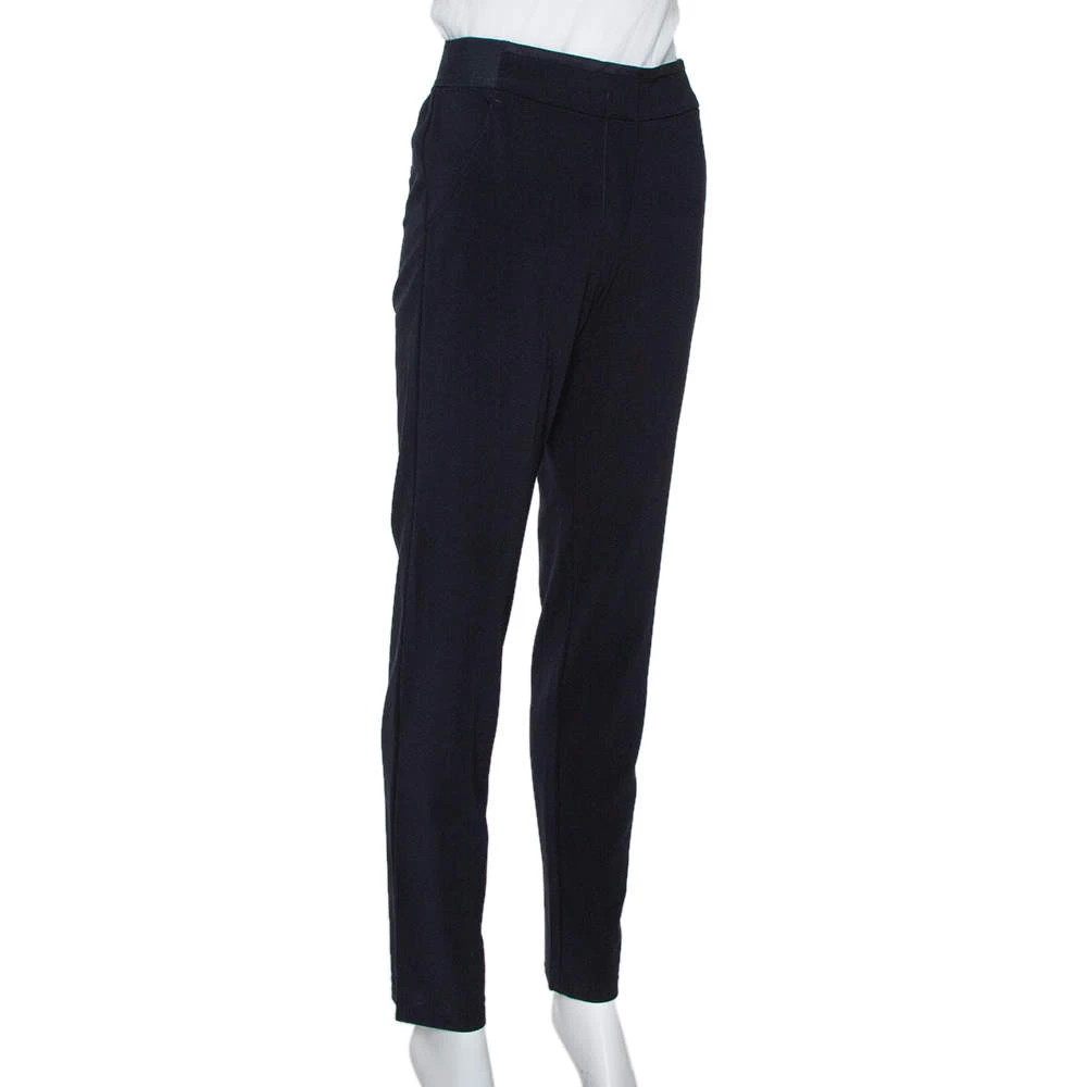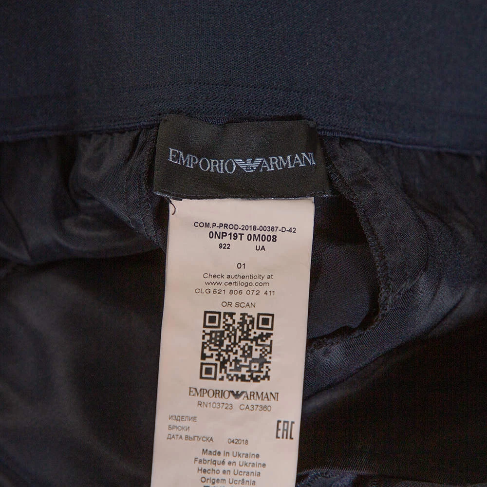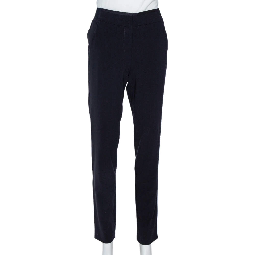 Everyone deserves a luxe pair of Emporio Armani trousers in their wardrobe. These ones are perfect. They are made from a wool blend in navy blue and feature front zip closure, four pockets and a great fit.
