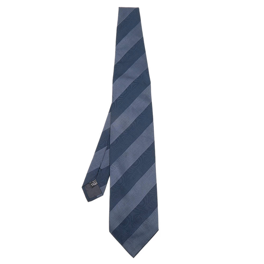 Polish your formal outfit with this stunning tie from the House of Emporio Armani. It is tailored using navy-blue striped silk fabric. It features a width of 9 cm. Complete your style with sophistication as you wear this tie.