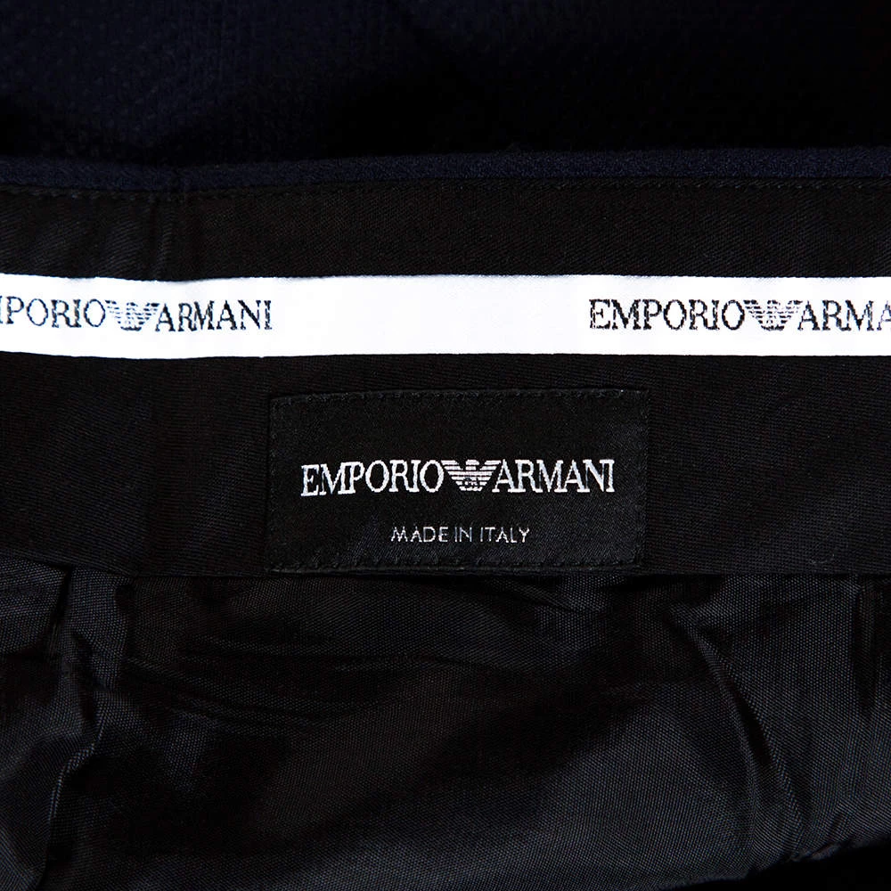 Perfect for formal occasions, these stylish trousers from Emporio Armani make for a great buy. Crafted from textured wool, they come in a lovely shade of blue. They are styled with four pockets, button closure, belt loops and are tailored to deliver a good fit. Pair with a crisp shirt and you are good to go.