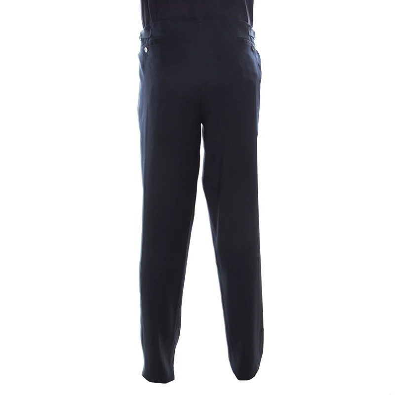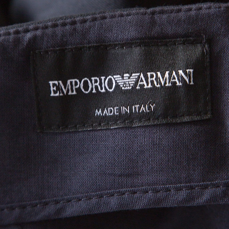 This pair of trousers from Emporio Armani is well-tailored from wool and just right for a formal setting. The pants are navy blue and can be paired with blazers, shirts and leather shoes.