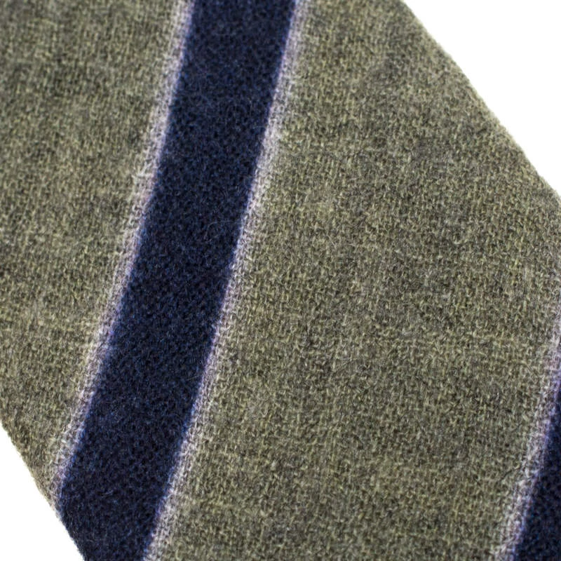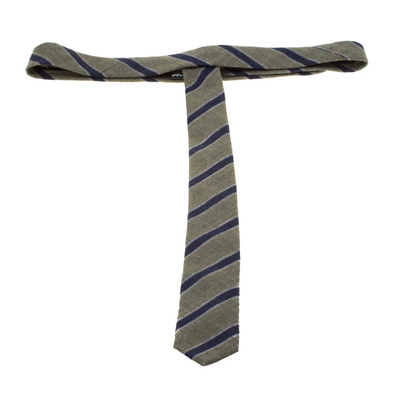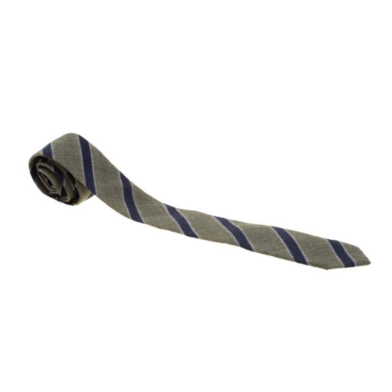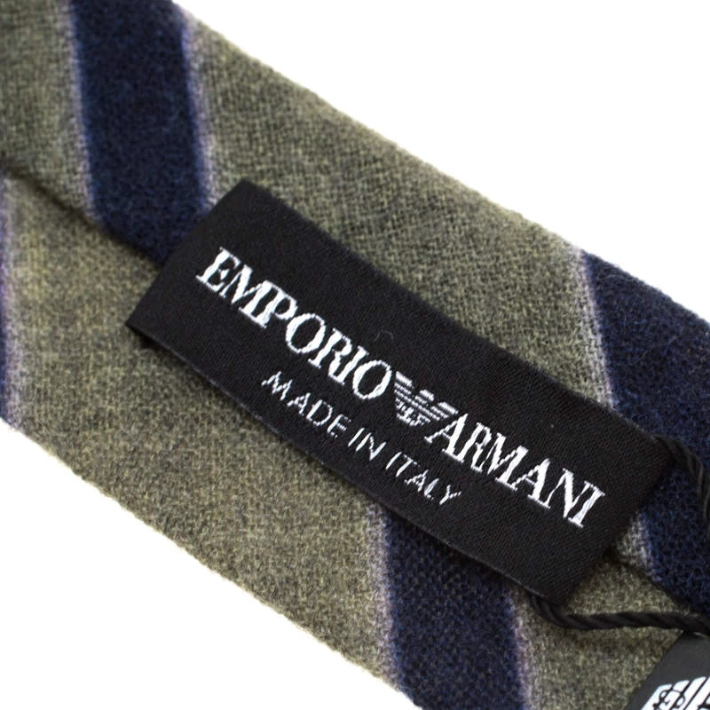 Speak luxury through your choice of accessories with this tie from Emporio Armani. It has been cut from wool and designed with diagonal stripes of olive green and navy blue all over and the label as a keeper loop on the back.