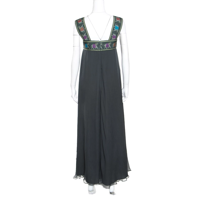 Statement silhouette and timeless appeal combine to make this maxi dress from Emporio Armani a worthy closet investment. It is cut from a premium quality silk and is styled with a beautifully embroidered neckline accented with elephant motifs and zip fastening at the rear to offer a classic fit. Gorgeous and chic, take this maxi dress, from the label’s Spring-Summer 2017 collection to your evening look with matching heels and eye-catching jewelry.