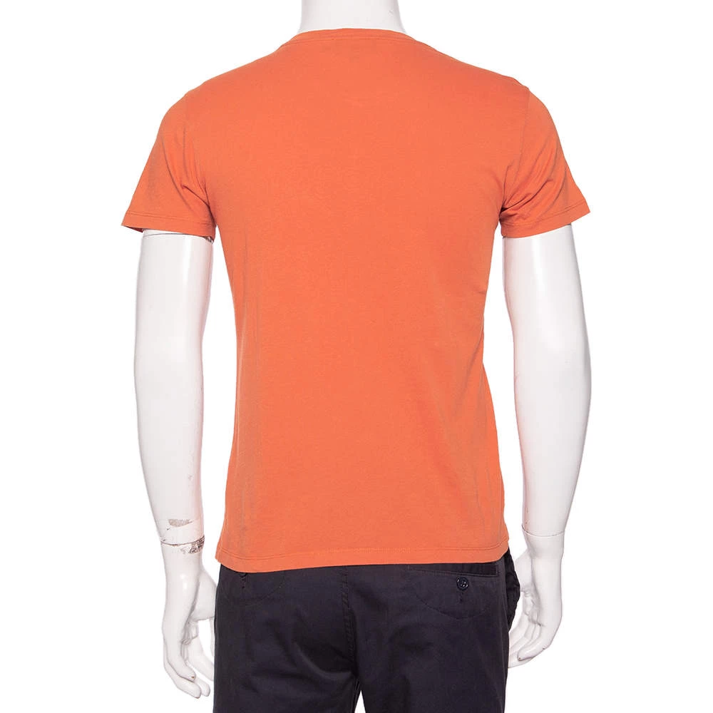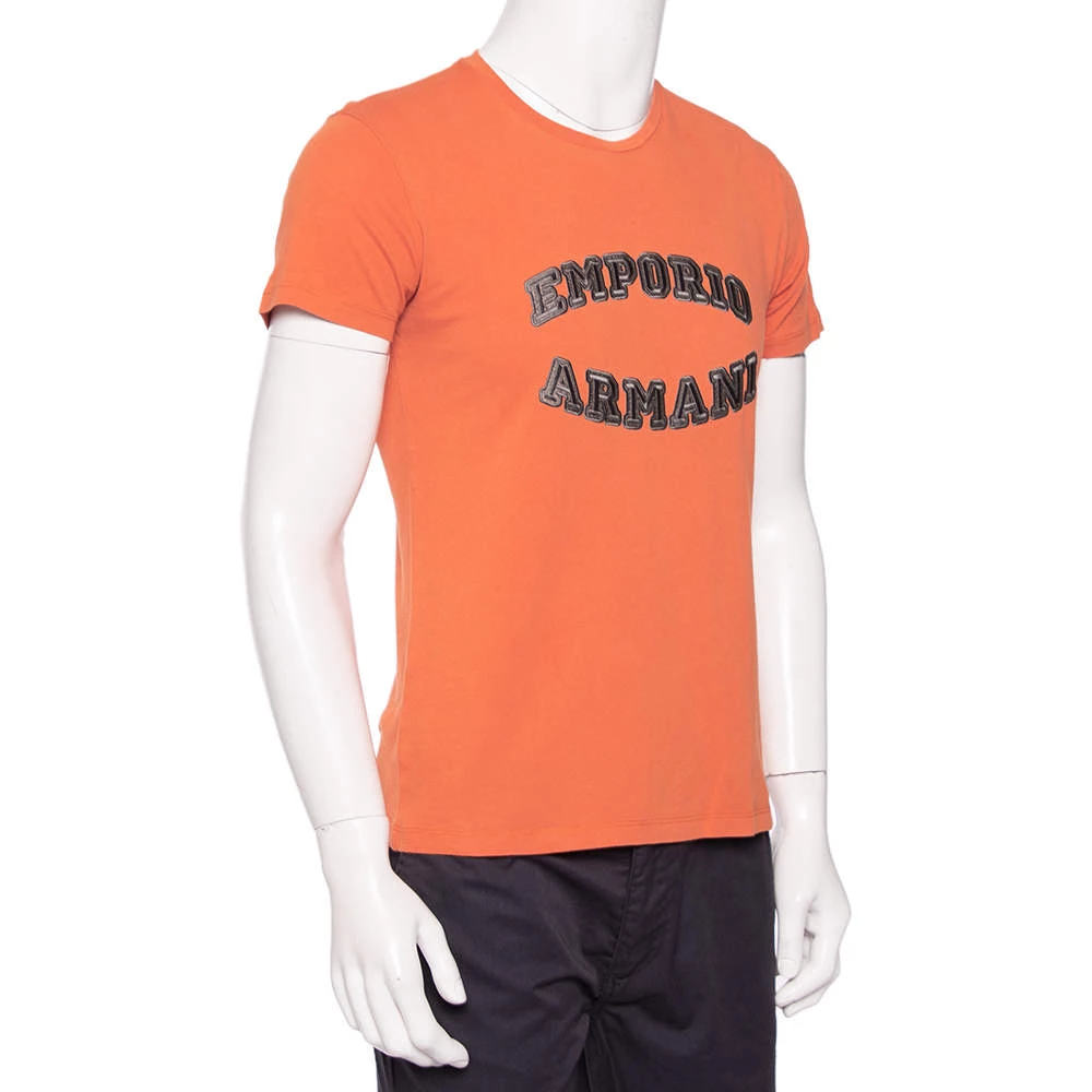 A seamless blend of comfort, luxury, and style, this Emporio Armani t-shirt is a must-have piece! Made from cotton in an orange shade, the creation is elevated by the brand logo. Finished off with a round neckline and short sleeves, it can be styled with denim pants for a cool look.