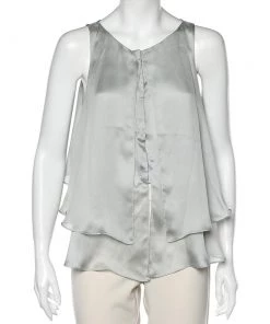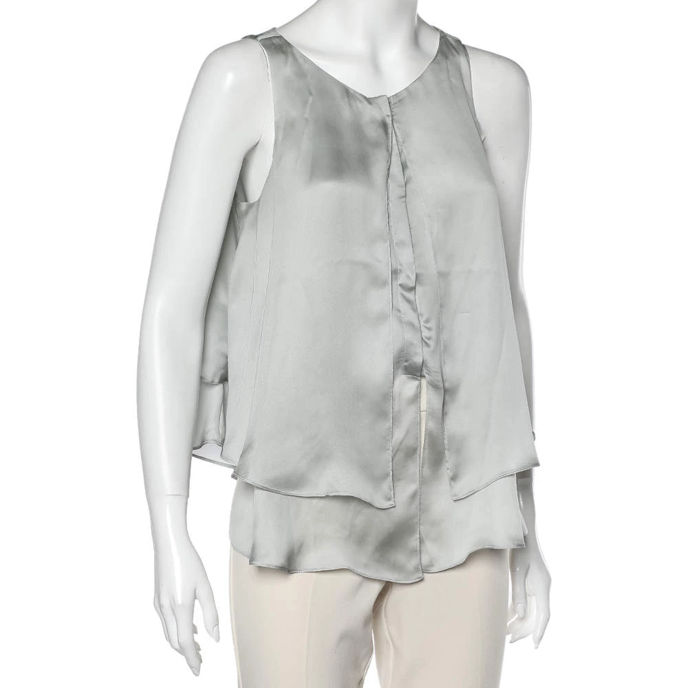 Easy to pair with skirts, jeans, or tailored pants, this Emporio Armani sleeveless top ensures versatile styling options. It features a front button closure, a simple neckline, and layered details.