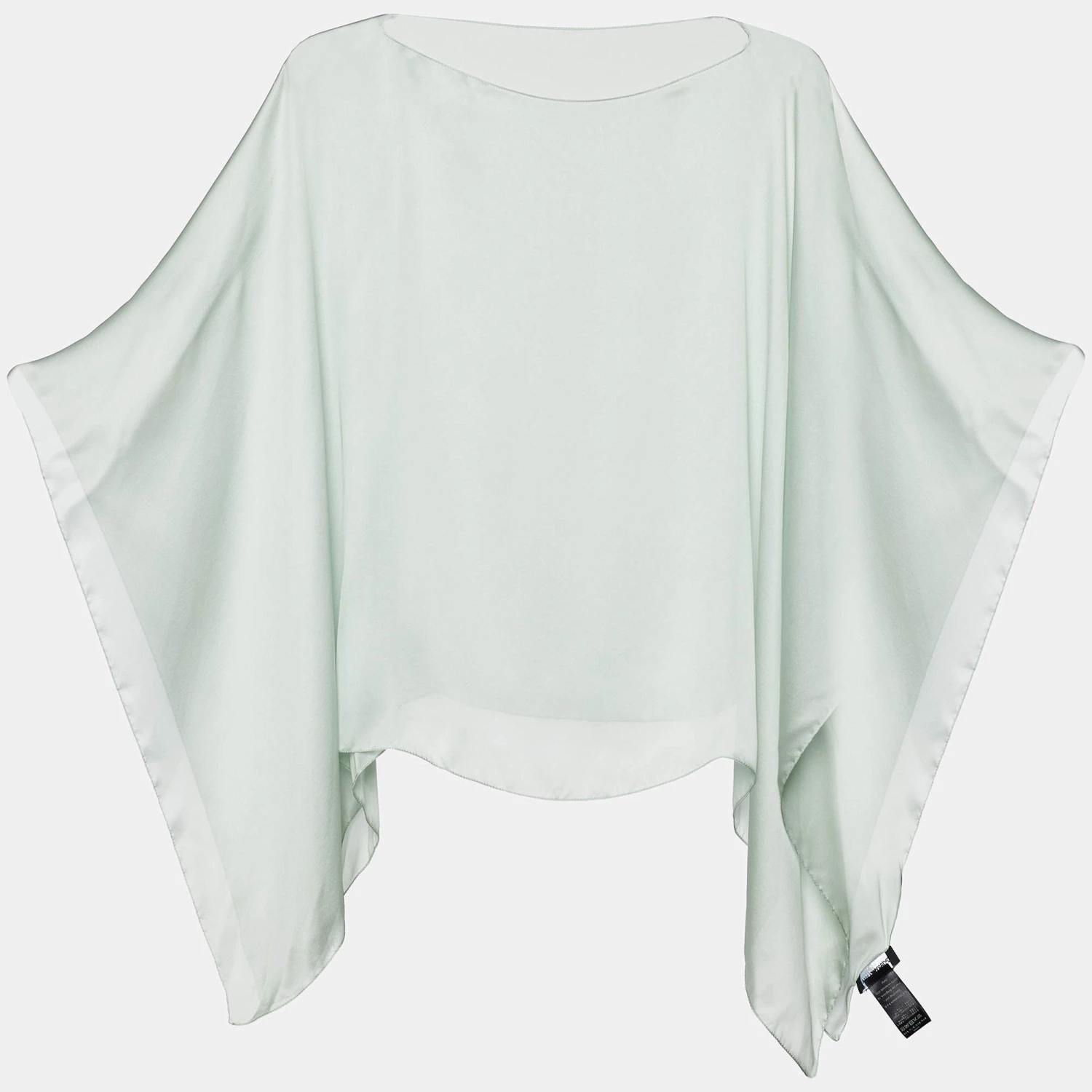 Airy and comfy, this poncho from the House of Emporio Armani is a must-have for you! It is tailored using pale green satin silk fabric and features long sleeves. Wear this over your basic camisoles and jeans to step out for errands.