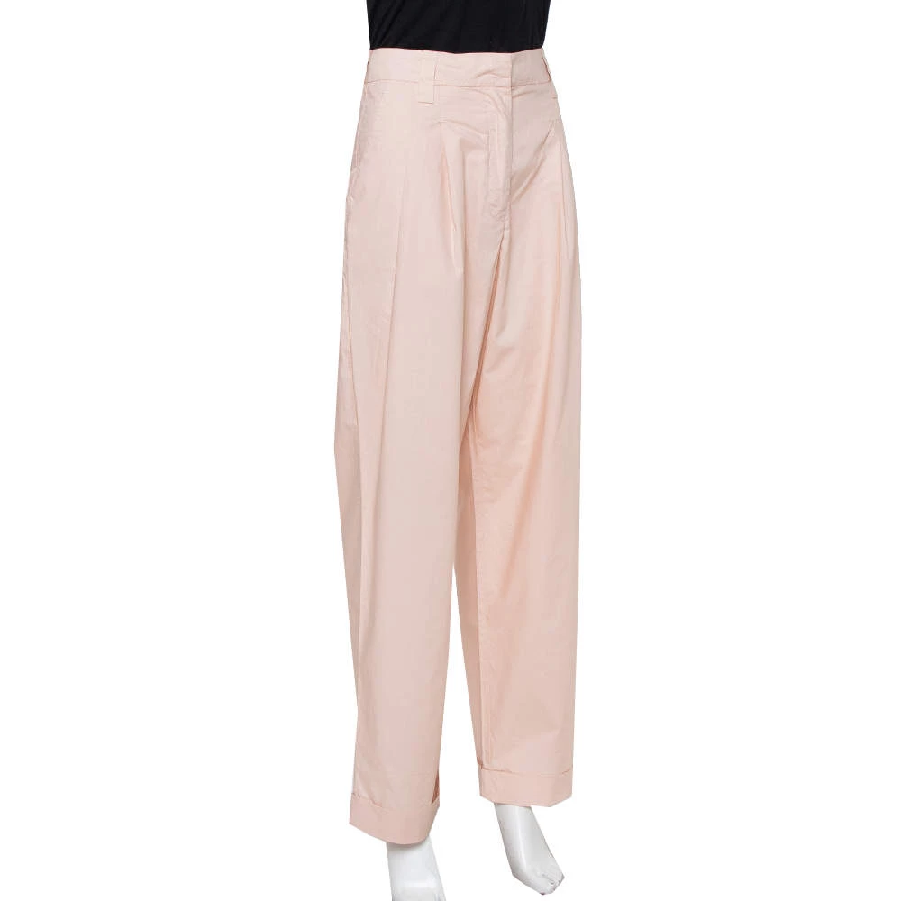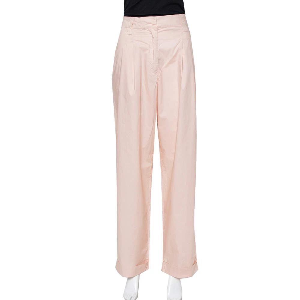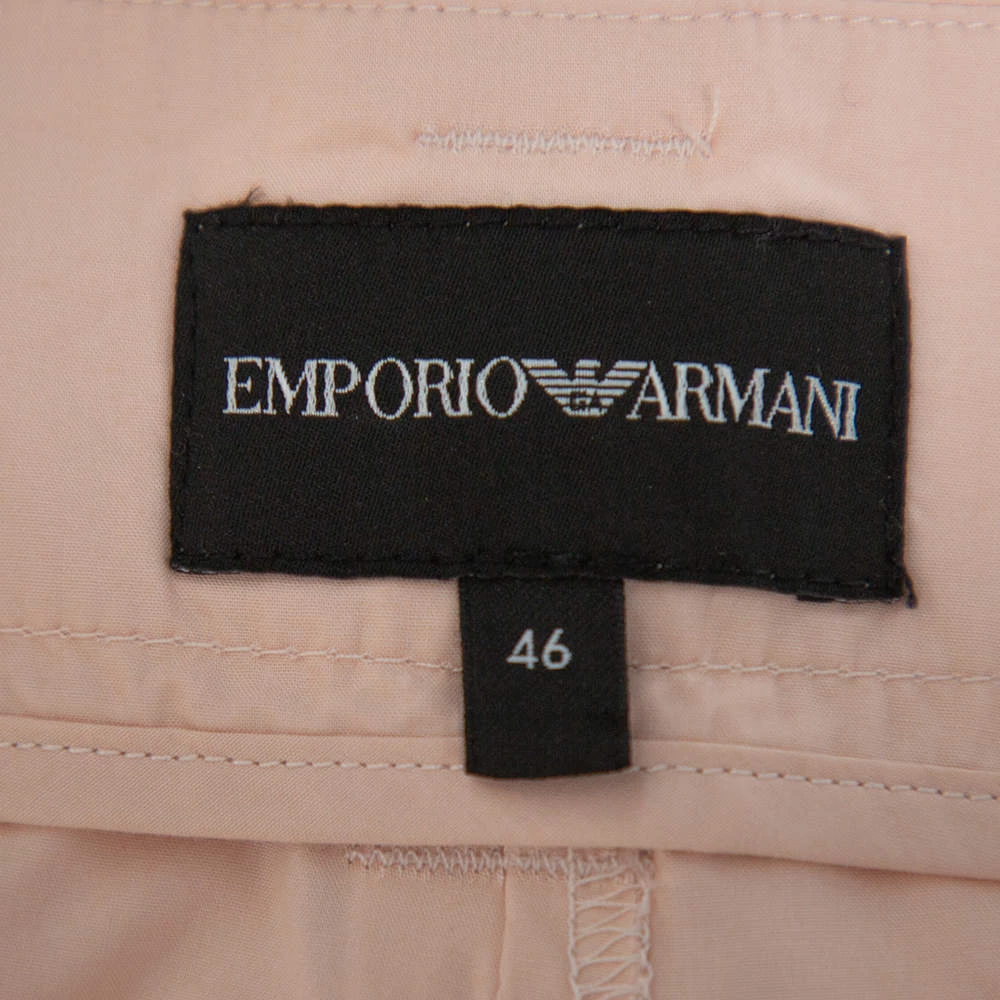 Known for its impeccable tailoring, Emporio Armani yet again brings you a versatile piece. Made from cotton in a pale pink shade, the trousers have a wide-leg silhouette and belt loops. Style them with a contrasting top for a chic and classy look.