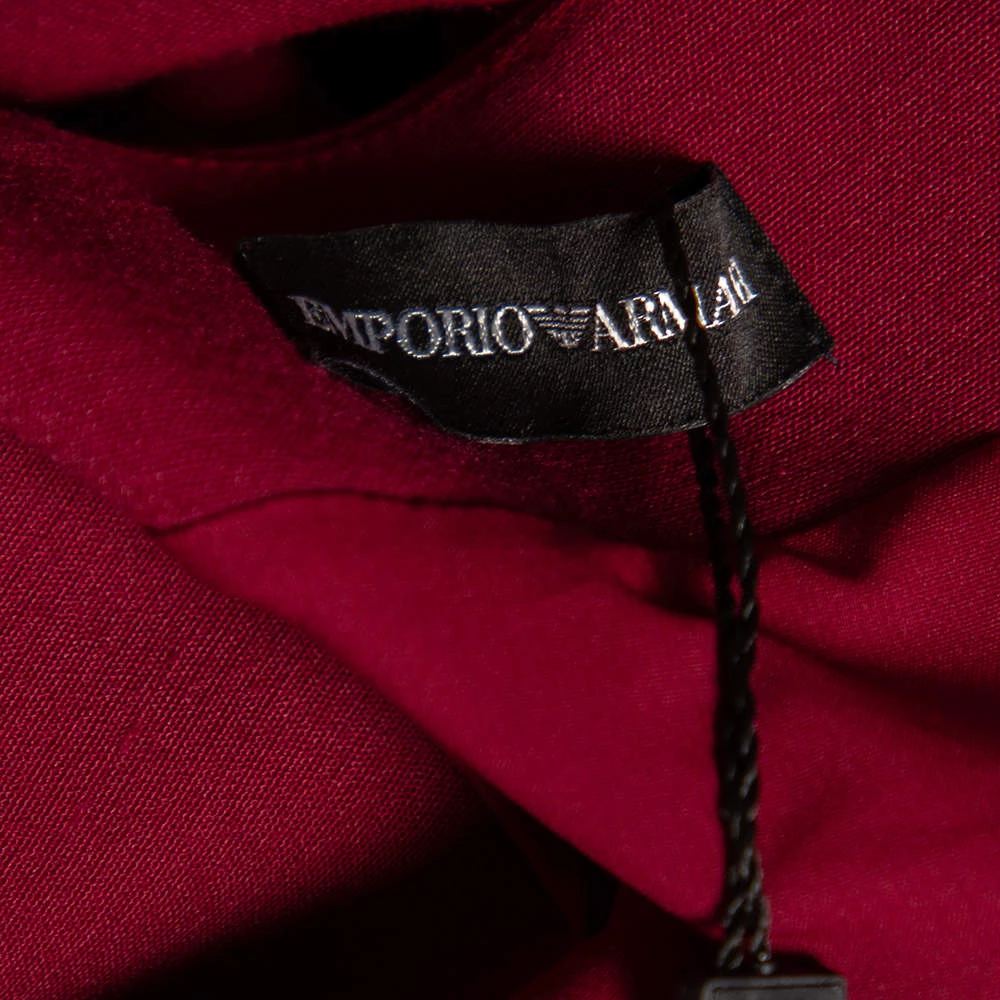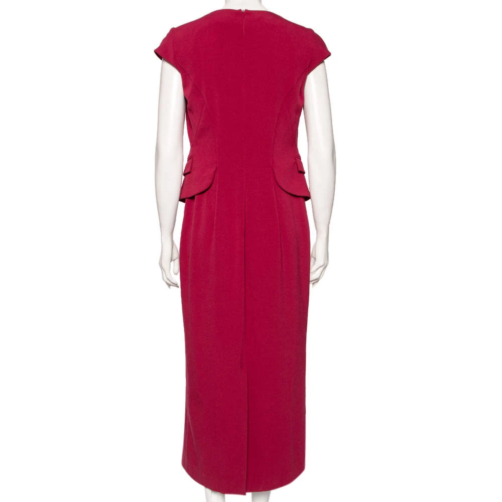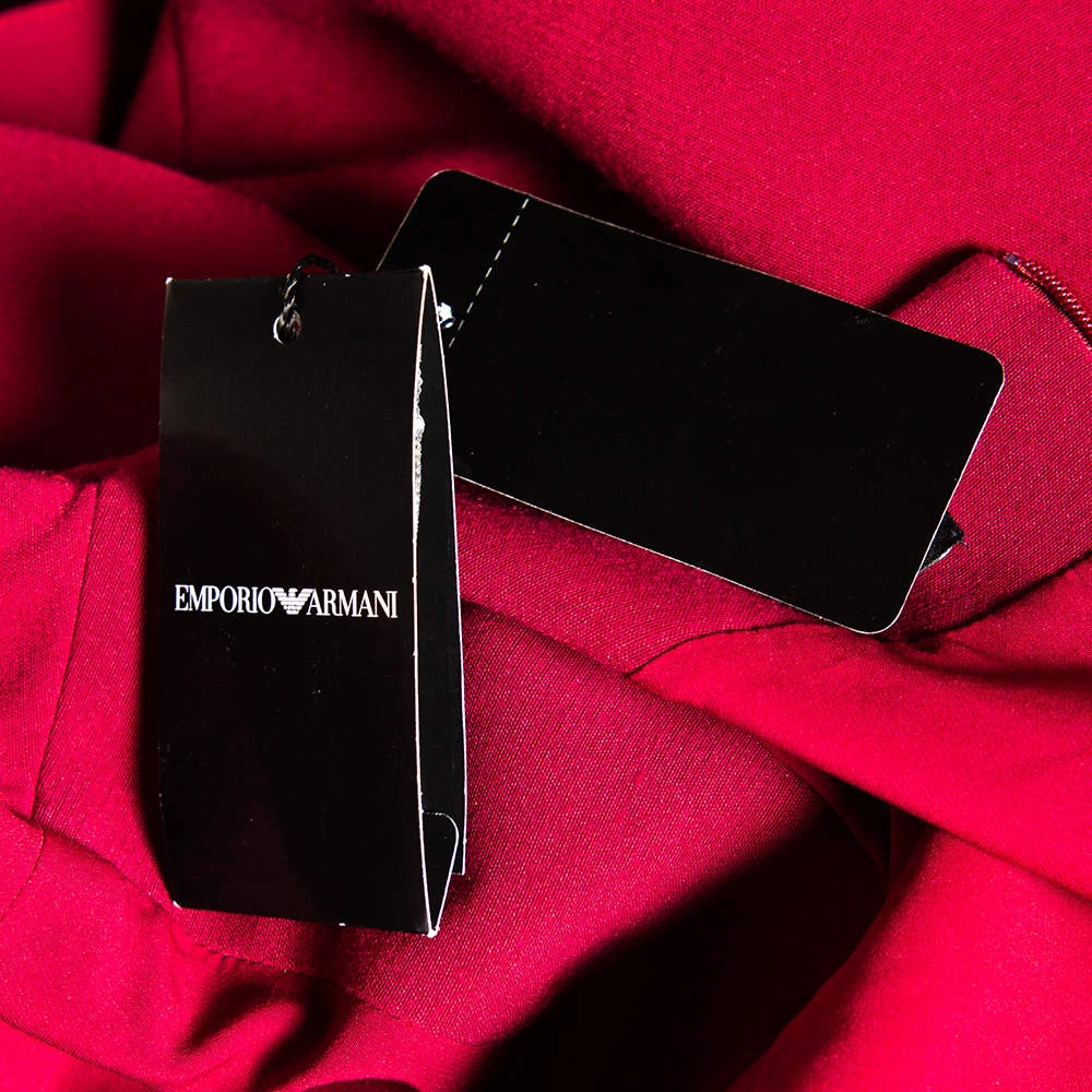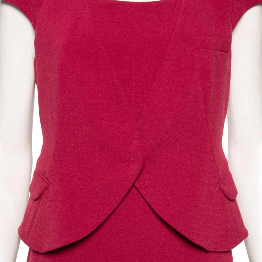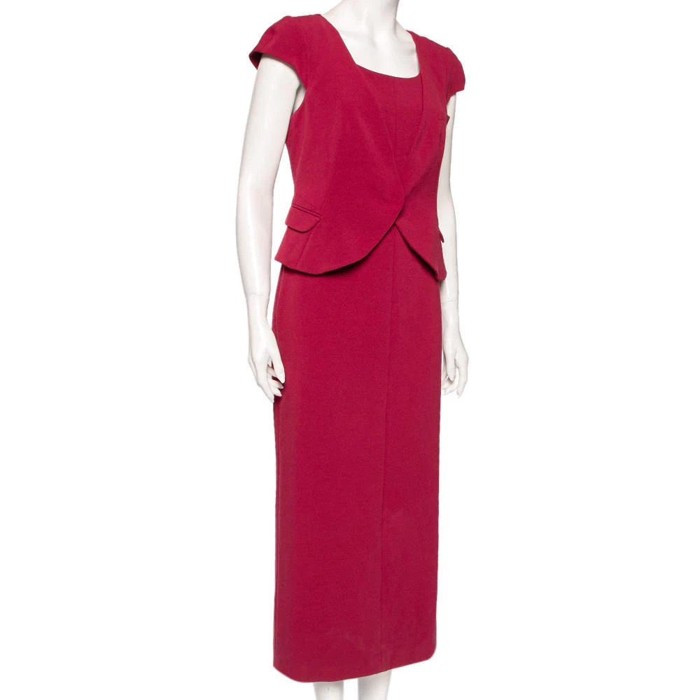 This dress from Emporio Armani speaks luxury, femininity, and demure with its neatly-tailored silhouette. Designed using pink knit fabric, this dress is accentuated with jacket detail, cap sleeves, and a zip-type closure. It comes with two pockets. Style this dress with pumps for a stunning look.
