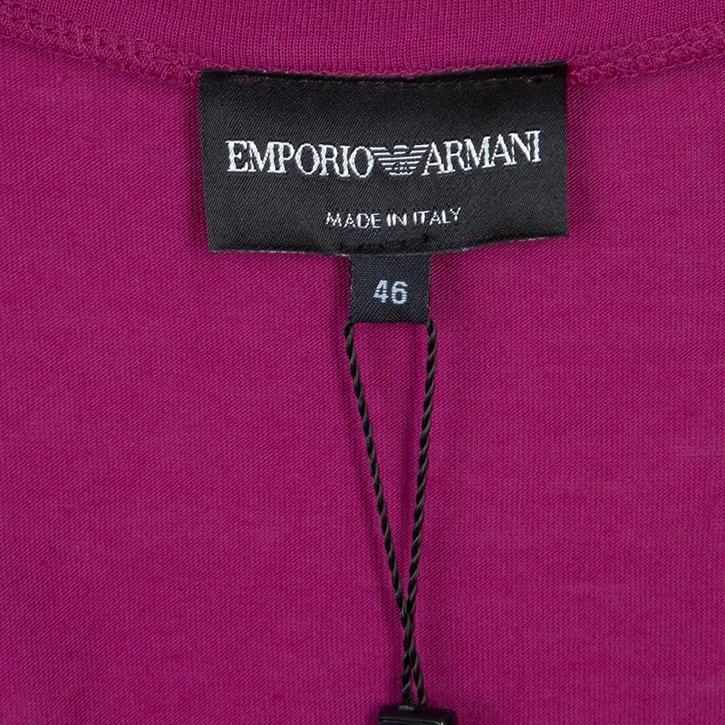 This is a quintessential chic wear showcased by Emporio Armani for the young and eclectic in you. Crafted from a blend of pink cotton and modal, the top is designed with a fitted silhouette. The shirt is embellished with the logo and hot-fix crystal studs. The short sleeve top will fit your form, and will definitely be your wardrobe essential.