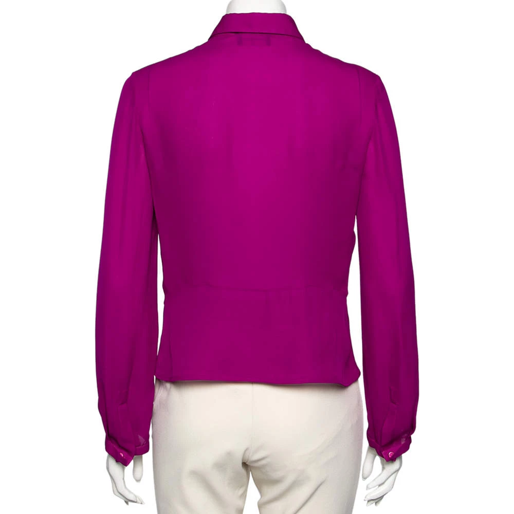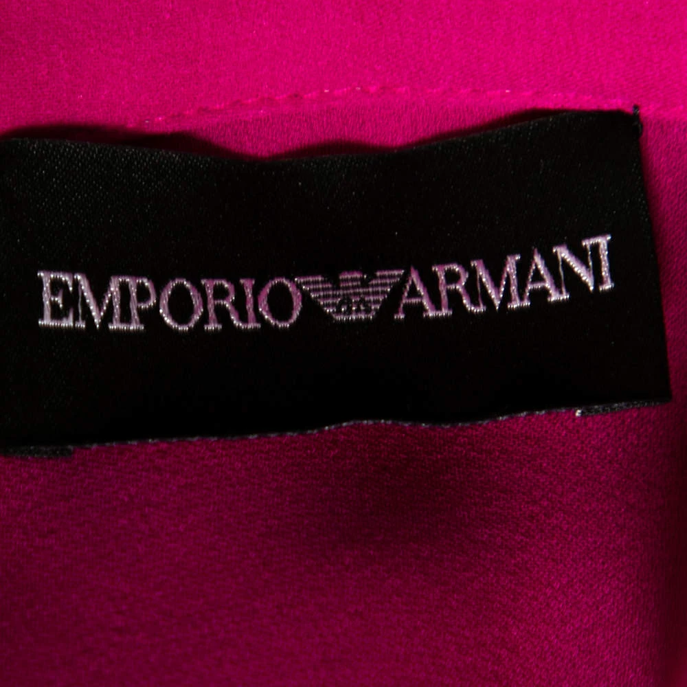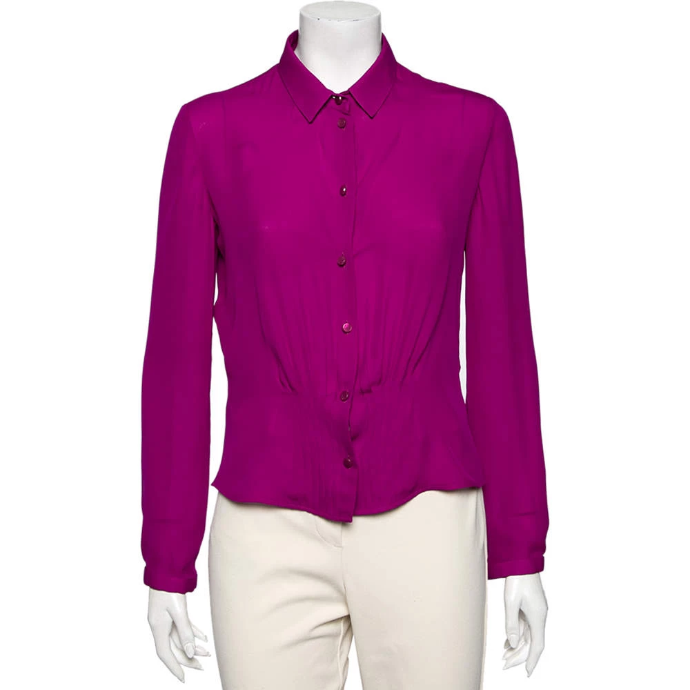 Emporio Armani brings to your closet this beautiful button-front blouse for those casual meetings. Crafted skillfully from silk, it is long-sleeved and has a pleated detail on the front. It is truly a sophisticated piece that will match well with trousers and pencil skirts.