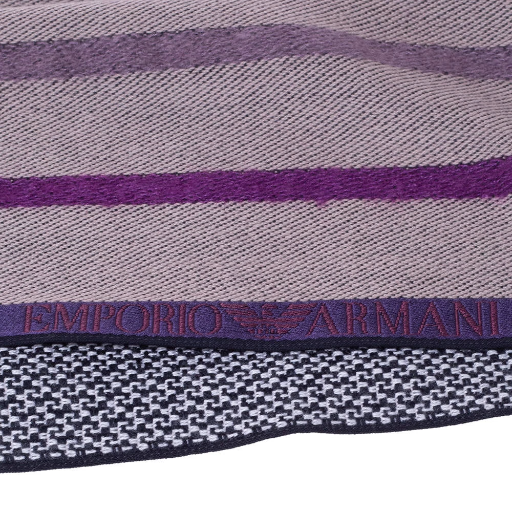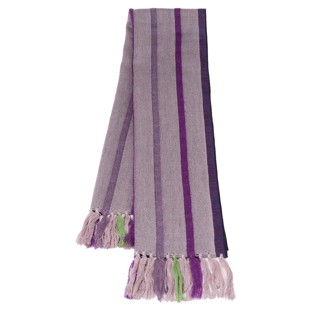 A beautifully designed stole from the house of Emporio Armani will add grace to your overall look. Complete your daily ensembles with this splendid purple-colored scarf that is made from a wool blend. It flaunts tassel details and a striped pattern throughout.