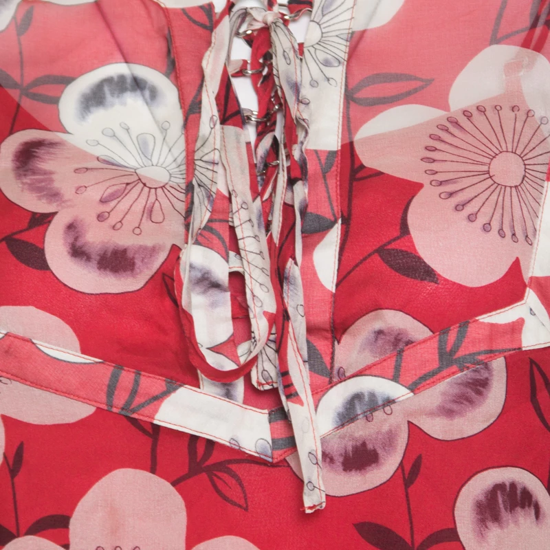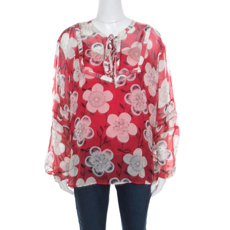 How lovely is this red and white blouse from Emporio Armani! Cut from 100% silk, it features a floral print all over it and flaunts a round neckline with a yoke and a self-tie detailing and long sleeves. Pair it with denims and ballet flats for a fashionable day out.