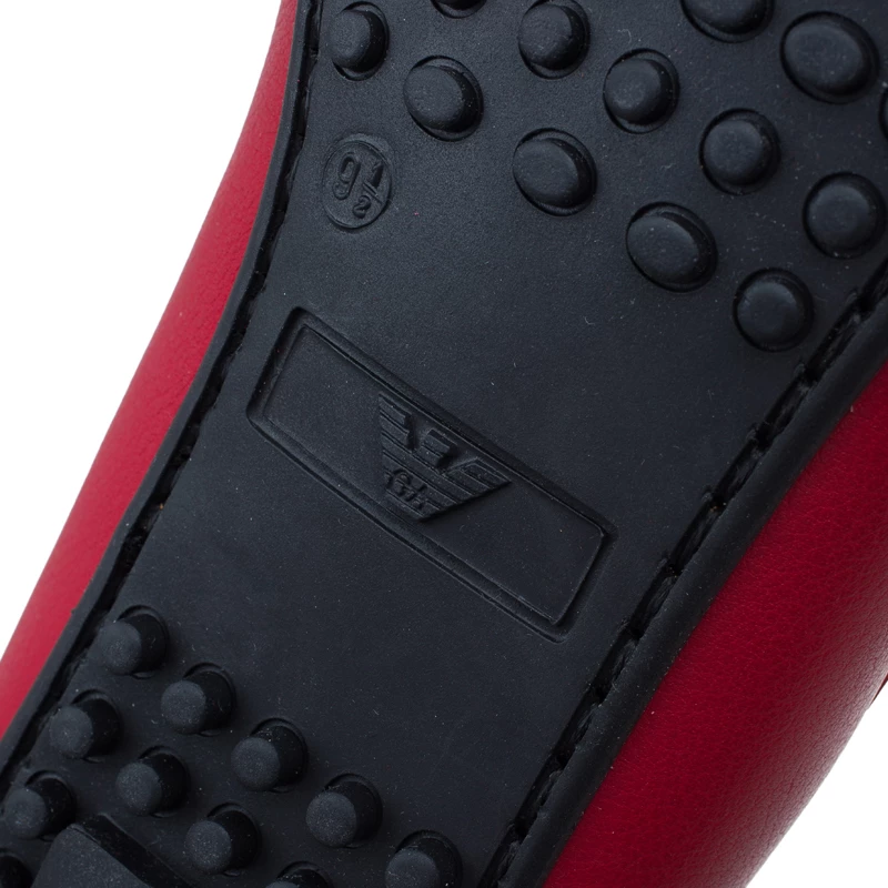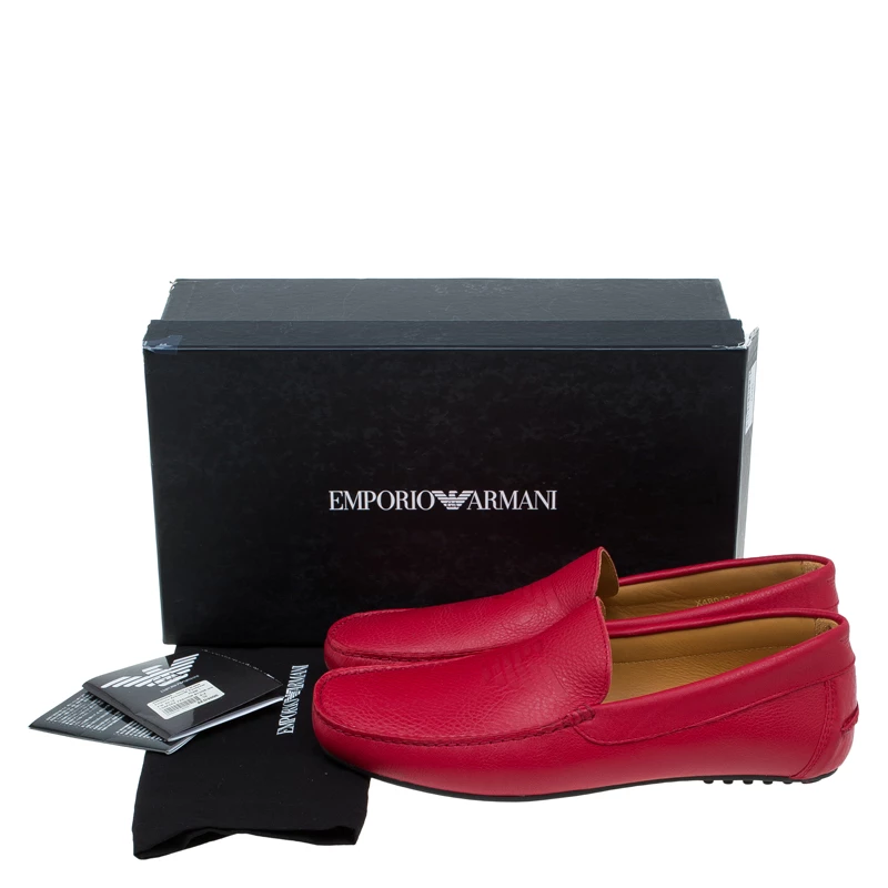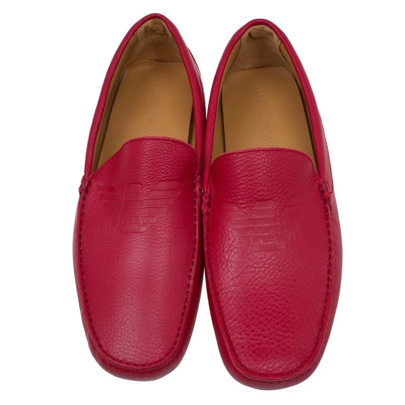 The accent of Emporio Armani to combine style with opulence has always met a yes! Crafted from red leather, the pair features round toes and the logo embossed fronts.