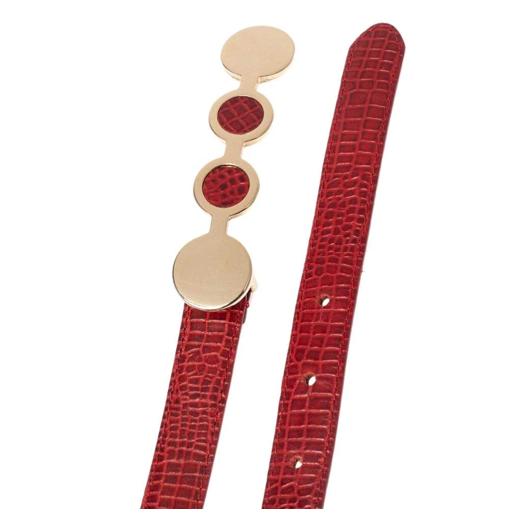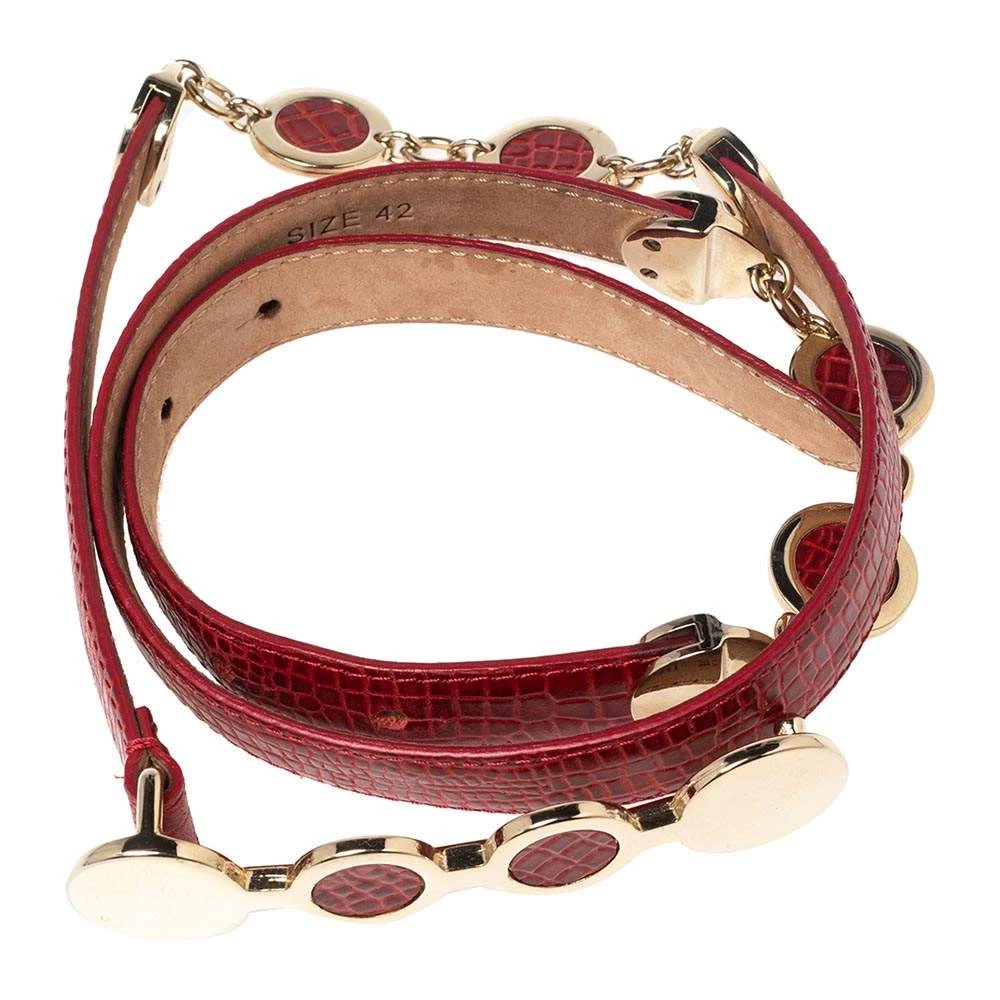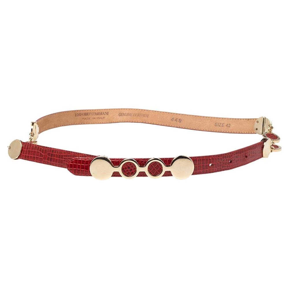 Your accessory repertoire is about to get a lot more colorful and luxurious with this waist belt from Emporio Armani. It has been styled using red lizard-embossed leather with gold-toned embellishments elevating its look. It is 90 cm in length.