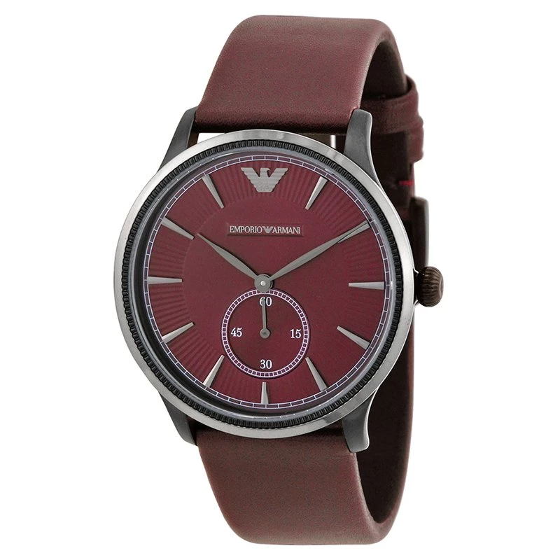 Accentuate you look with this resplendent and striking timepiece by Emporio Armani. Made from stainless steel, it features a sophisticated red colour to count on along with a round bezel. This watch profiles an attractive red dial that houses the seconds sub-dial along with hands and hour indicators. The leather bracelet features a buckle closure and the 30M water resistant watch has a quartz movement.