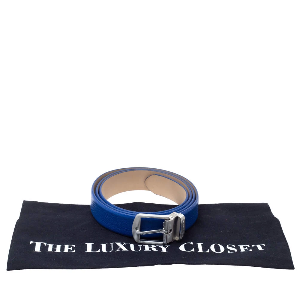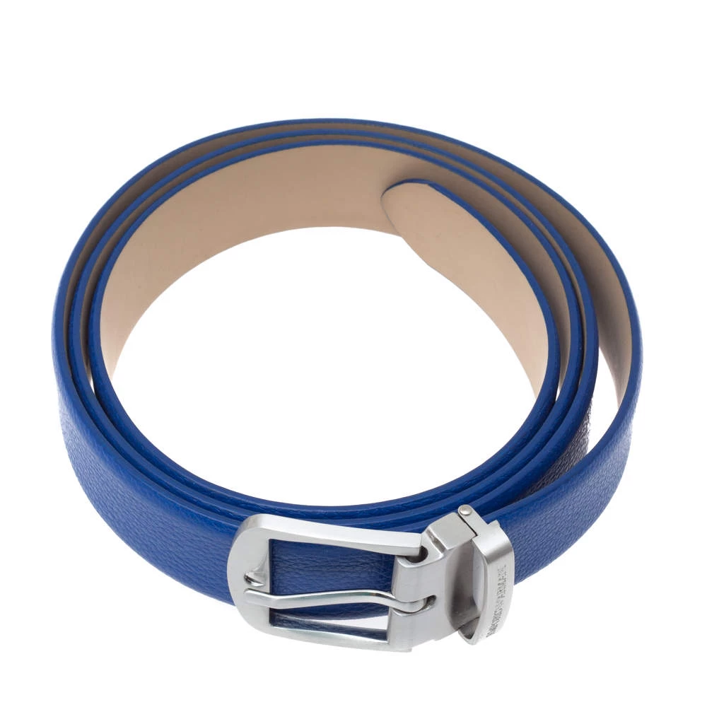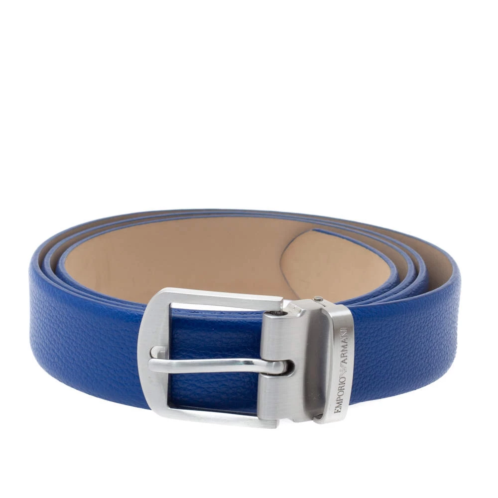 Belts are always a good option to add to your collection of accessories. This piece from Emporio Armani enchants with its luxe appeal. This creation is crafted from royal blue leather and designed with a simple & sleek buckle in silver-tone metal.