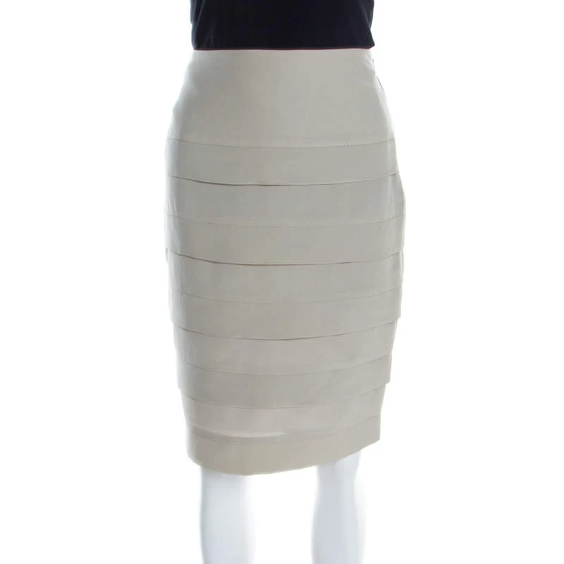 Tailored in the gorgeous green silk, this piece comes from the house of Emporio Armani. The pencil skirt features a pleated design with a zip closure at the back. This creation will be your perfect choice for any formal event.