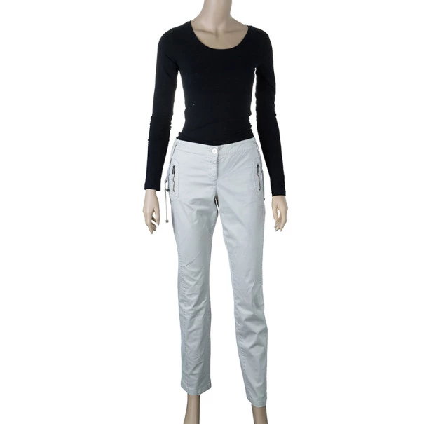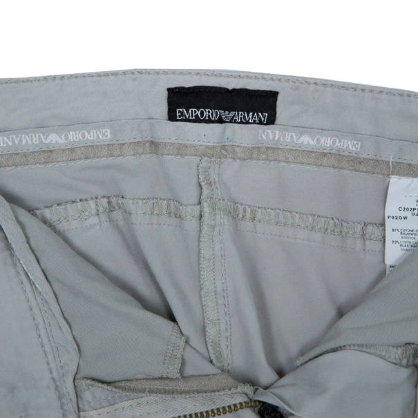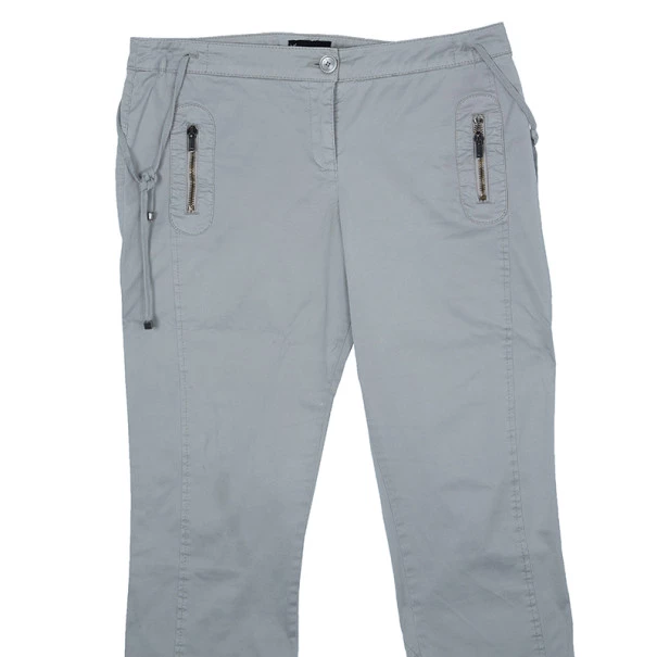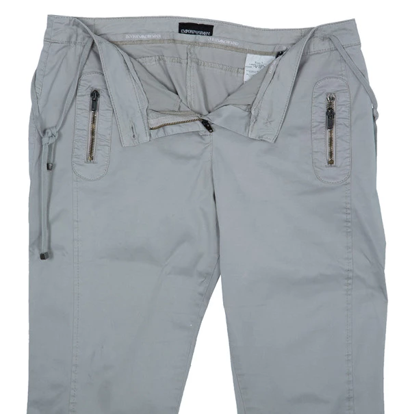 Made from a cotton and elastane blend, these Emporio Armani trousers are the perfect casual summer pair. Their grey shade gives them a calm look, coupled with side zipped pockets, drawstring belts, as well as a zipper fly with a button.