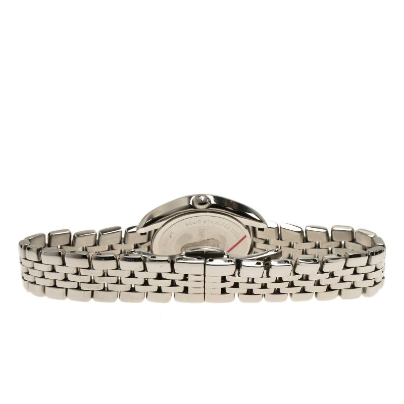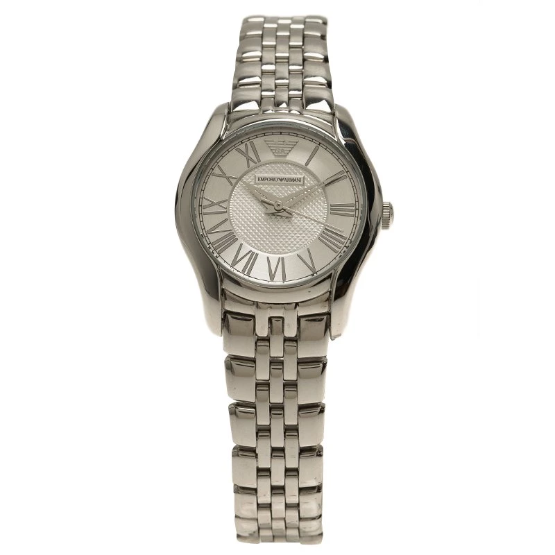 You would never want to miss this stunning and classy watch coming from Emporio Armani. Made with stainless steel, this watch features an impressive bezel that counters silver dial. This dial profiles luminescent hands with Roman numerals. The bracelet features hidden clasp closure and the 30M water resistant has a quartz movement.