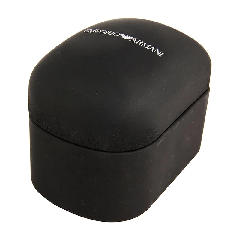 This Armani chronograph men’s watch is a combination of style and exquisite craftsmanship. Crafted from stainless steel, it features a silver dial, three sub-dials, bar index time indicators, a date window and silver-tone hands. The leather strap clasps on the wrist with a buckle closure. This 50M water resistant watch is perfect for daily wear.
