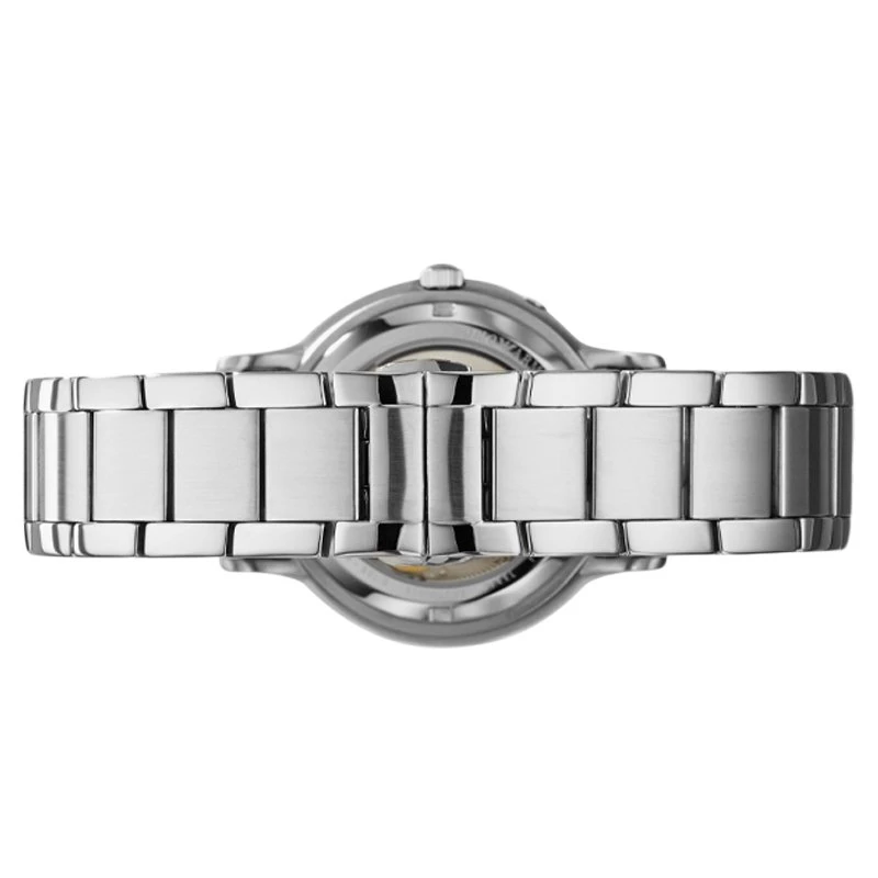 This stunning and striking timepiece comes from the house of Emporio Armani. Made from stainless steel, it features a round bezel with an impressive silver dial. This watch houses bronze-tone hands and hour indicators along with two sub-dials and a date dial. The chain link bracelet features a hidden clasp closure and the 50M water resistant has an automative movement.