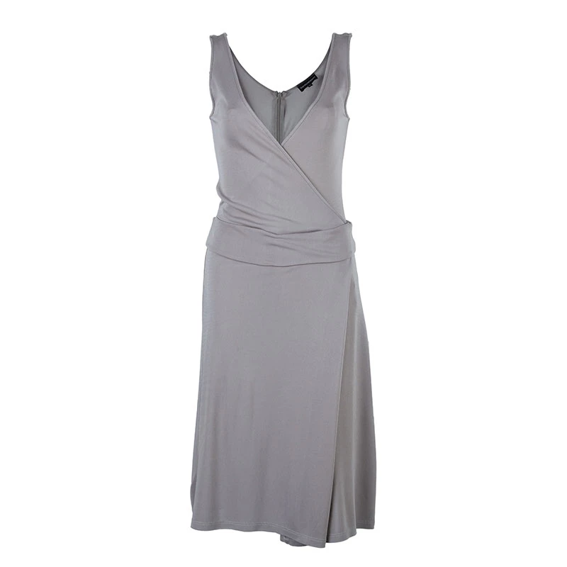 Inspired by a warp design, this dress by Emporio Armani is elegant and classic. Crafted from viscose, it features plunge V neck and and a sleeveless cut with a relaxed A-line silhouette. It is equipped with a rear zip closure.