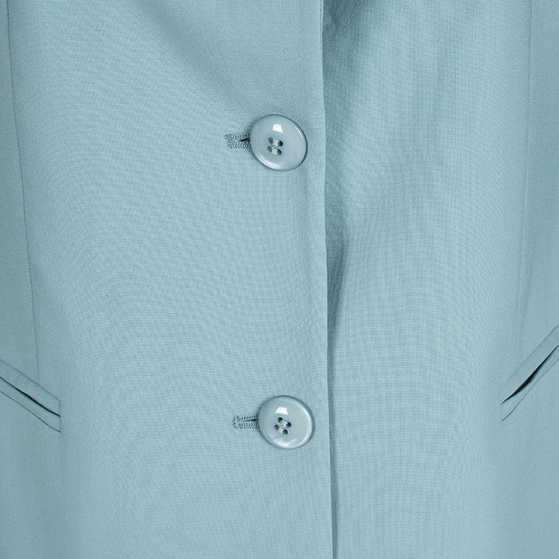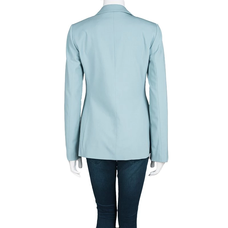 Chic, and very modern, this blazer from Emporio Armani will make others gasp in admiration.The fabulous teal blue blazer is made from wool and it features a structured silhouette. It flaunts a collar, long sleeves, and button fastenings with two pockets on the front. You’ll look lovely when you wear this blazer to work.