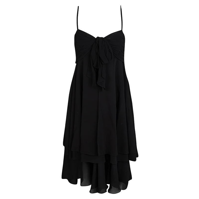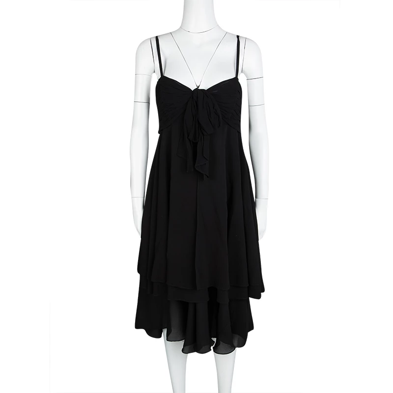 Elegant and stylish, this dress from Emporio Armani comes ready to give you a high-fashion look. It flaunts a ruched bodice with a tie and a layered hem. A pair of beige slides or wedges will complete your look beautifully.