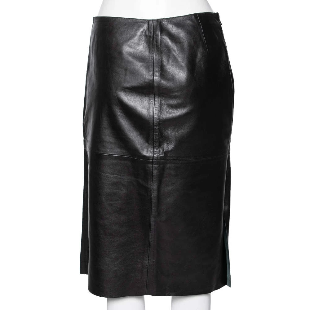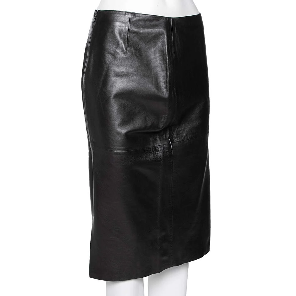Designed by the House of Emporio Armani, this skirt is an amazing creation that will help you look stylish. It is tailored using vintage black leather into a knee-length silhouette. It has a zip-type fastening for closure. Add this stunning skirt to your collection today!